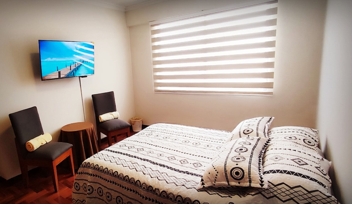Üdvözlünk otthonos lakásunkban Cochabamba szívében! Egy központi, új és modern épületben található a nyüzsgő Fidel Anze Park, és sétatávolságra leszel a város turistalátványosságaitól, szupermarketeitől, éjszakai klubjaitól és éttermeitől. Emellett élvezheted az épület olyan kényelmi szolgáltatásait, mint a medence és a gyönyörű ökológiai kert. Tedd felejthetetlen élménnyé a cochabambai látogatásodat!