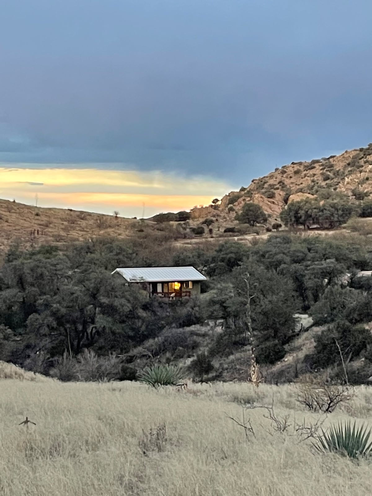 Sierra Bonita is a rustic Cabin (with a full, newly renovated kitchen!) at the Gateway of Light- a place for prayer and meditation. Sleeps 2 guests on a queen bed. Dirt road travel is required (3 mi) but is maintained for passenger cars. We are located 7 mi from Sunsites. Our property offers opportunities for hiking, birding, meditation and dark skies. A nature lovers paradise and 15 mins from Cochise Stronghold. Please read through this listing fully as we are a unique stay!