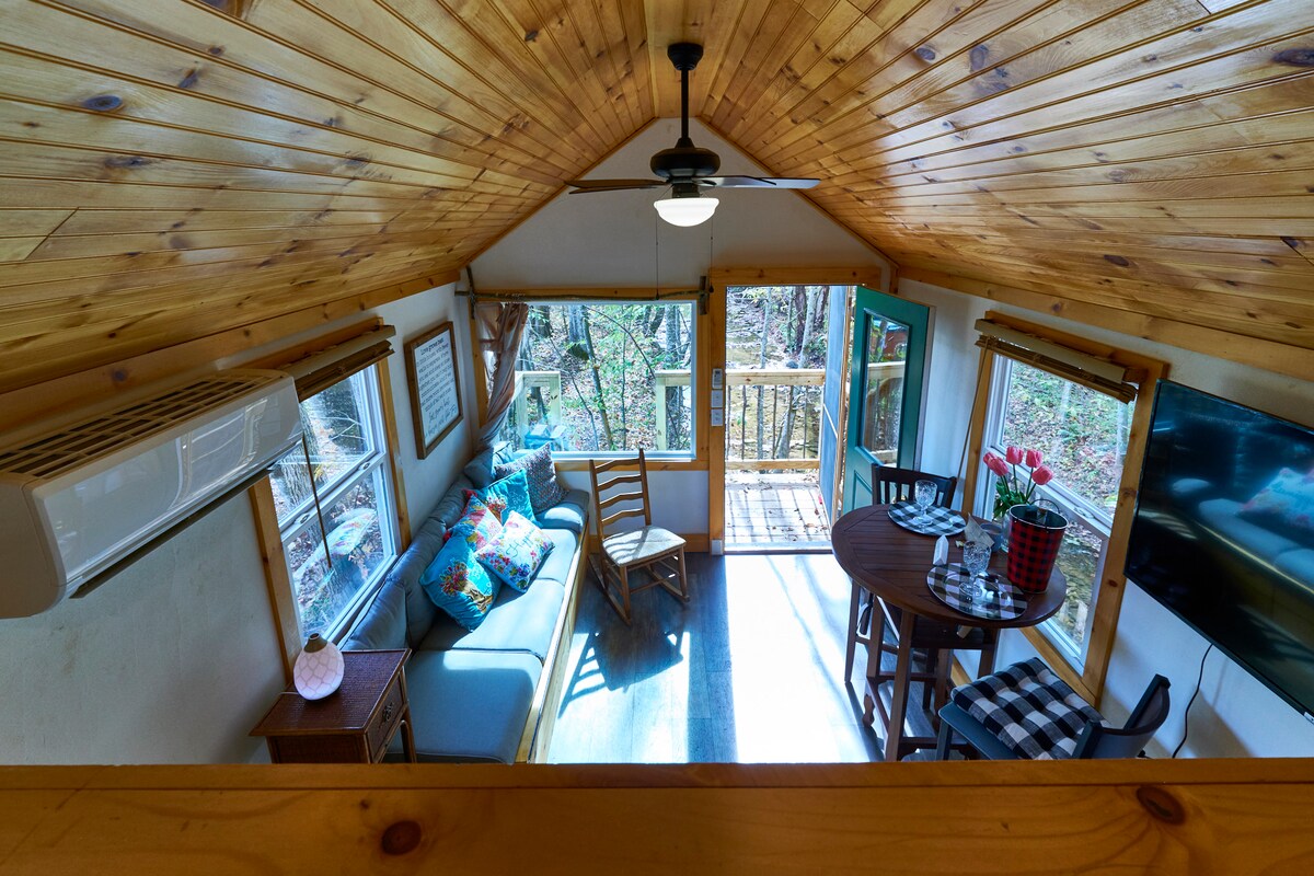 Gondolkodtál már azon, hogy milyen érzés egy igazi miniházban megszállni? Ebben az aprócska víkendházban minden olyan ritka alapvető kellék megtalálható, amely általában nem látható egy miniházban. Teljes méretű hűtővel, teljes mosógéppel és szárítógéppel, valamint teljes méretű zuhanyzós fürdőszobával rendelkezik. A „Porch and Pine” rusztikus élmény egy nagyszerű helyen, 10 percre az I-40-es kijárattól a gyönyörű Foothills Parkwayen keresztül. Emellett 20 percre van a legközelebbi nemzeti park bejáratától. Ez a fajta „miniház” kevesebb mint 400 négyzetláb, a loftlakások kivételével.