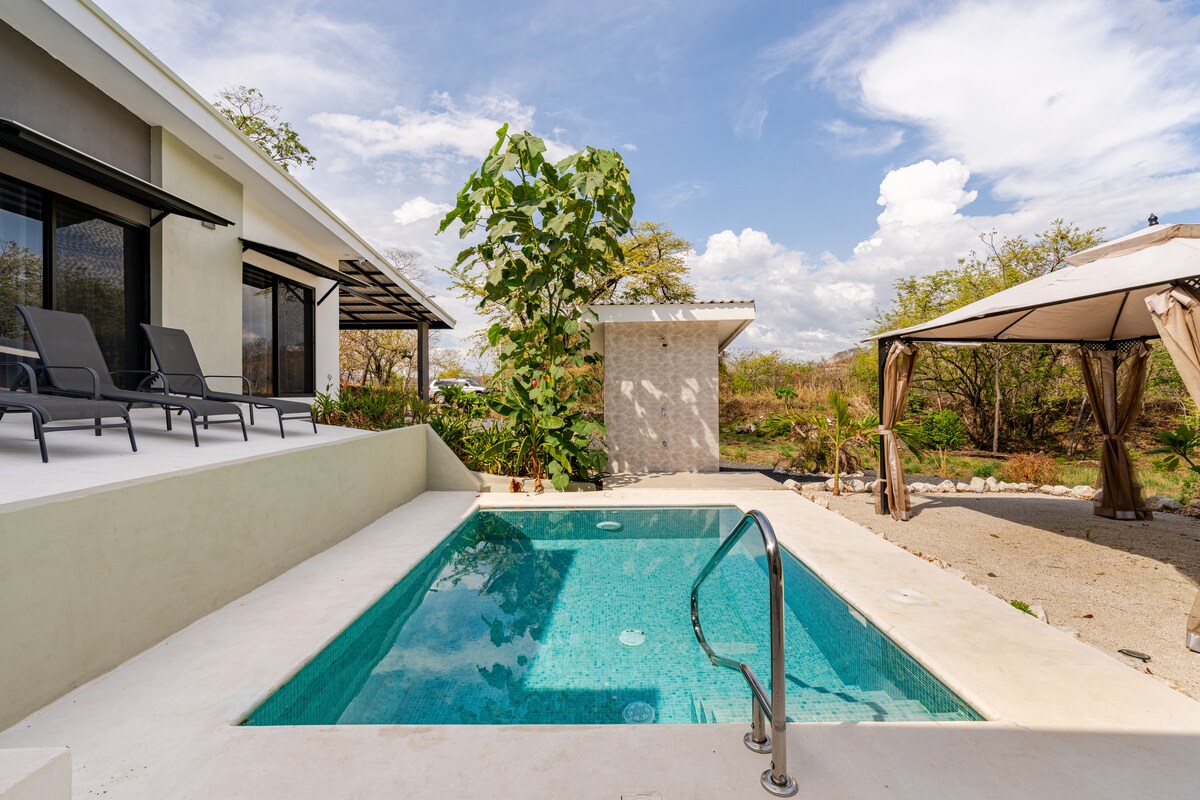 ⭐ “If you prioritize good sleep and clean and modern space, this is the place.” Do you like privacy? The solid concrete walls mean peace, quiet and total privacy. 2,067ft² / 192m² house walkable to dining and amenities. Fenix East ☞ AC in every room ☞ Private pool with sun loungers ☞ Outdoor patio garden ☞ Fully equipped kitchen ☞ Washer + dryer ☞ 3 min walk to beach ☞ Free off-street parking ☞ Safe + quiet neighborhood ☞ 40-min drive from Liberia Airport (LIR)