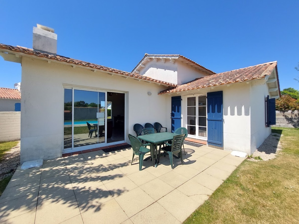 Au sein du golf de Saint gilles croix de vie, cette charmante maison parfaitement équipée pour 6 p et sa piscine privative est nichée dans un endroit calme . La mer se trouve à 15 mn et Coex avec à 3.5km. Nombreuses pistes cyclables. Un abri piscine assure un chauffage naturel dès Mai . Sécurité optimum en position fermée et ouverture totale possible . Lits faits à votre arrivée. Le garage est réservé aux propriétaires. Vous disposez d’une partie fermée avec accès jardin pour vélo/golf ..