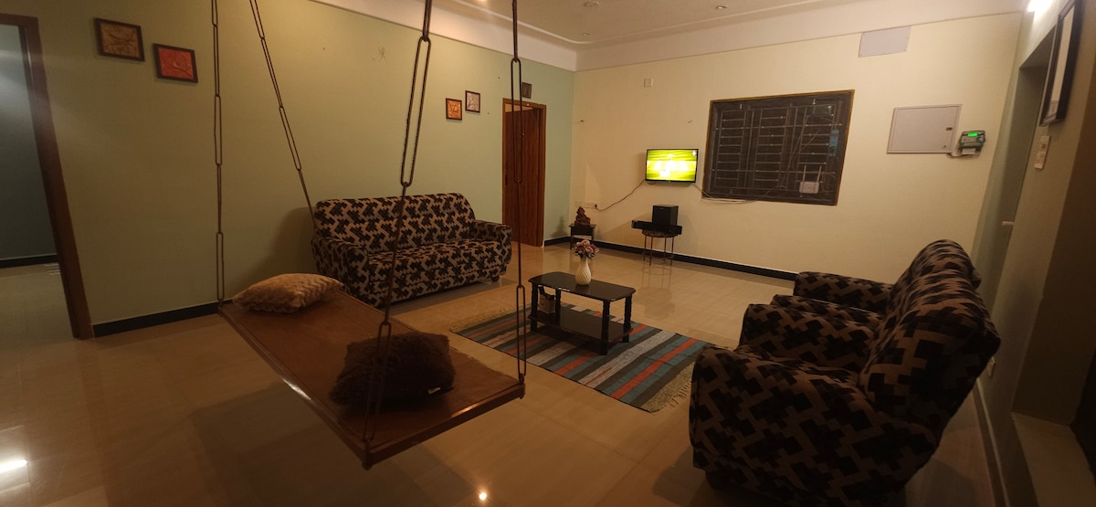 A Nyugati-Ghátok lábánál található ez a privát, első emeleti menedék, amely teljes nyugalmat kínál a csendes nyugati völgyben. A hely tökéletes olyan párok és családok számára, akik digitális méregtelenítésre vágynak, és arra hív, hogy lazítsatok, találjatok újra egymáshoz, és szívjátok magatokba a friss hegyi levegőt. Az Isha Yoga Center közelében található, így ideális a kikapcsolódásra, az elmélkedésre és a természetben töltött, frissítő kiruccanásra, ahol szarvasokat, pávákat és egzotikus madarakat is megfigyelhetsz.