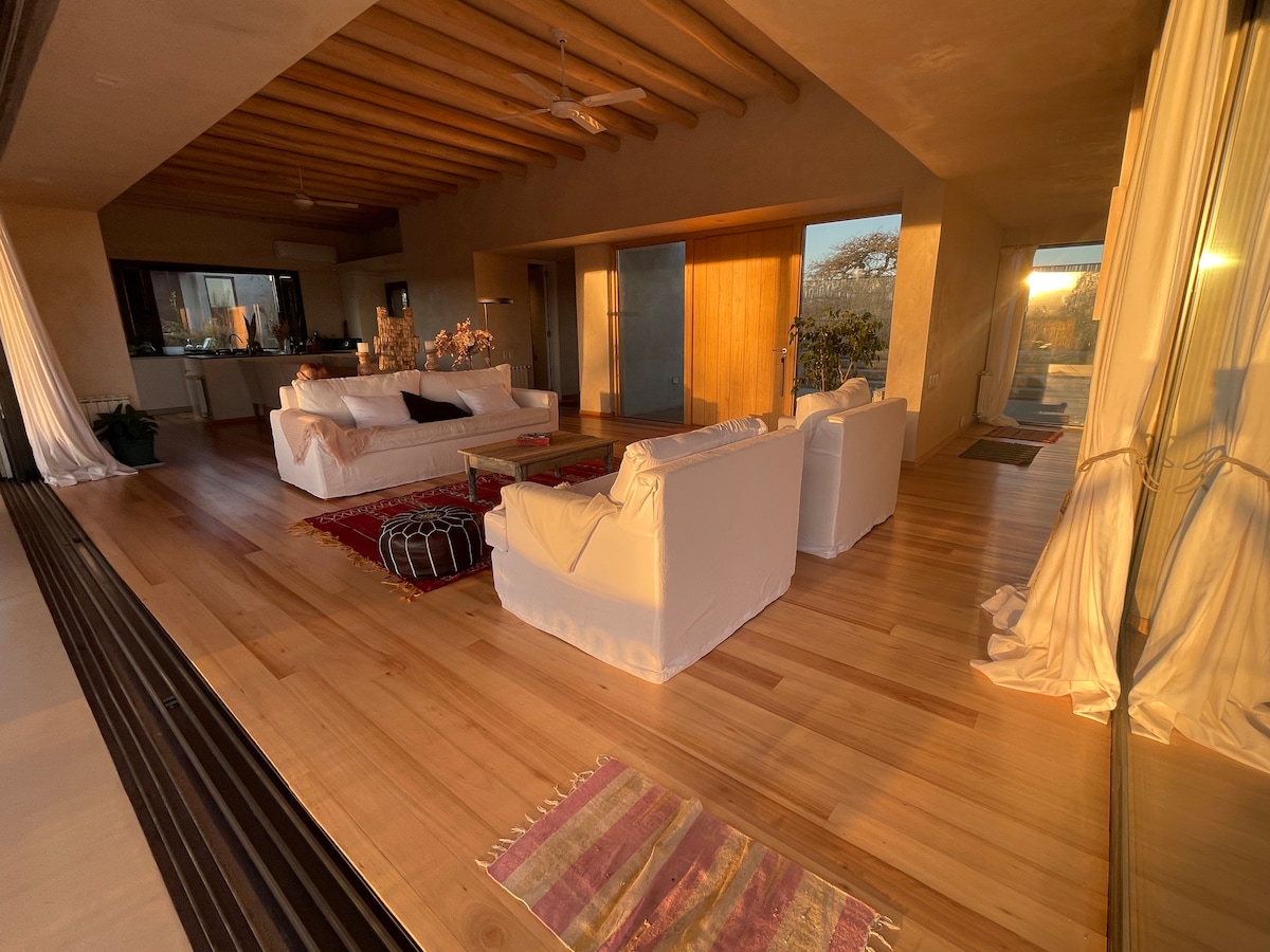 A ház nagy magasságban, amelyet a művészet, a dizájn és a kényelem részletei jellemeznek, ugyanakkor 5 hektár őshonos hegy szívében található. A hegyek tetején található, és néhány percre a várostól a kiváltságos panoráma, az úszómedence, a 3 galéria , a grillező és a Cordoba művészek tárgyai jellemzik. Légi tér-érzékelést ad a látogatónak, amely a madarak repülésére emlékeztet, és egy pihentető és csendes szemlélési élményt ösztönöz.