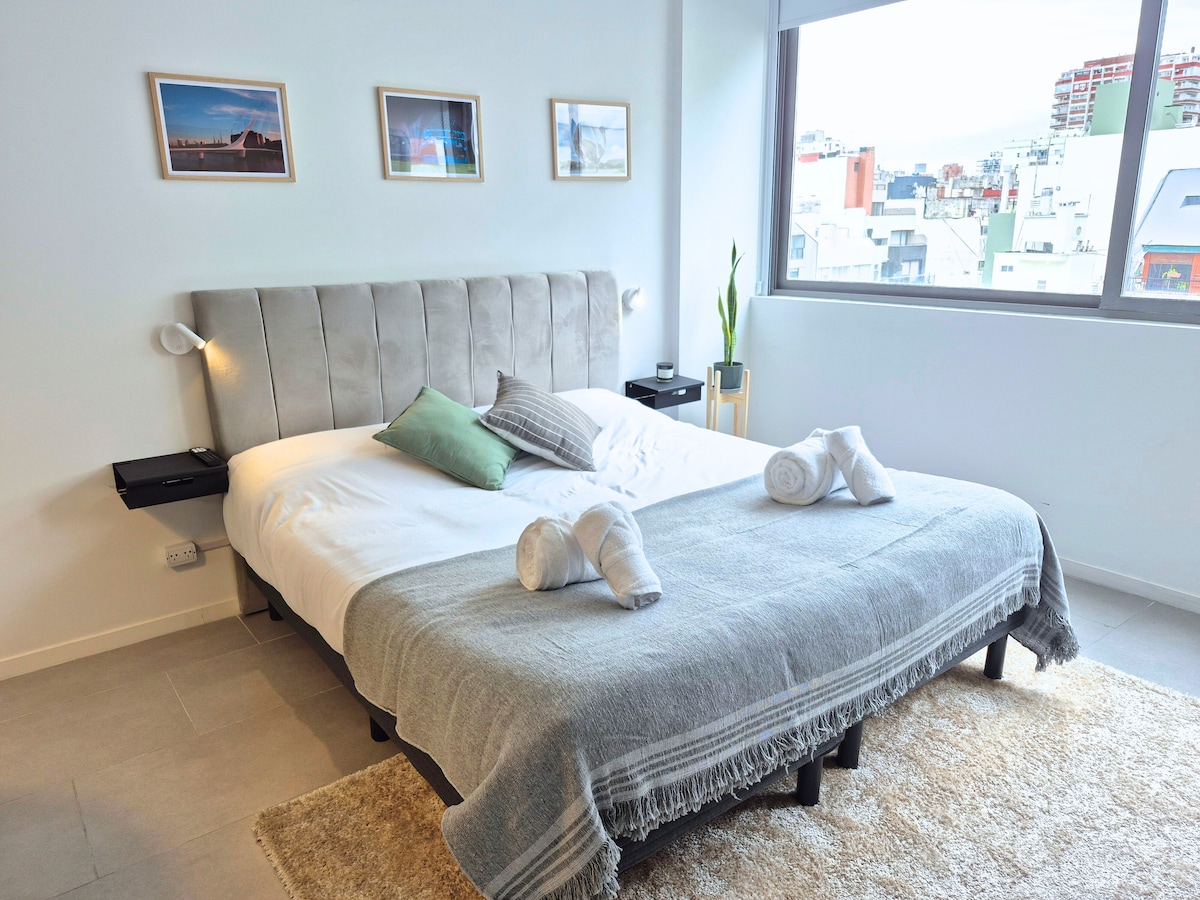 Üdvözlünk az újonnan felújított, gyönyörű 8. emeleten! Az elegáns Belgrano környék és a nyüzsgő Palermo közötti területen található otthonunk egy hálószobával és nappalival rendelkezik, ahol akár 4 vendég is elfér. A közlekedés verhetetlen: pár lépésre van a D metrótól és a Metrobustól. Gyönyörű erkéllyel, teljesen felszerelt konyhával rendelkezik, és tökéletesen légkondicionált az év különböző időszakaiban. A Wi-Fi szupergyors, 300 MB/s. Már nagyon várjuk, hogy találkozzunk!
