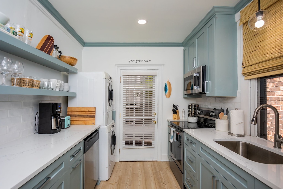 Ez a történelmi ingatlan 1838-ban épült, eredeti verandákkal ehhez a nagy charlestoni otthonhoz. Teljes felújítás 2023 januárjában, hogy létrehozd a tengerparti, tengerparti, szörfös sikkes helyet. A frissítések közé tartozik az új konyha, két új fürdőszoba és friss festék. Pihenj szórakoztató hangulattal és nagyszerű helyi műalkotásokkal körülvéve. A belvárosi éttermek és bárok egy rövid sétával elérhetők, de még mindig a MUSC Hospital közelében található csendes környéken vagyunk elrejtve. Bejárható az Upper King Street éjszakai életébe és éttermeibe.
