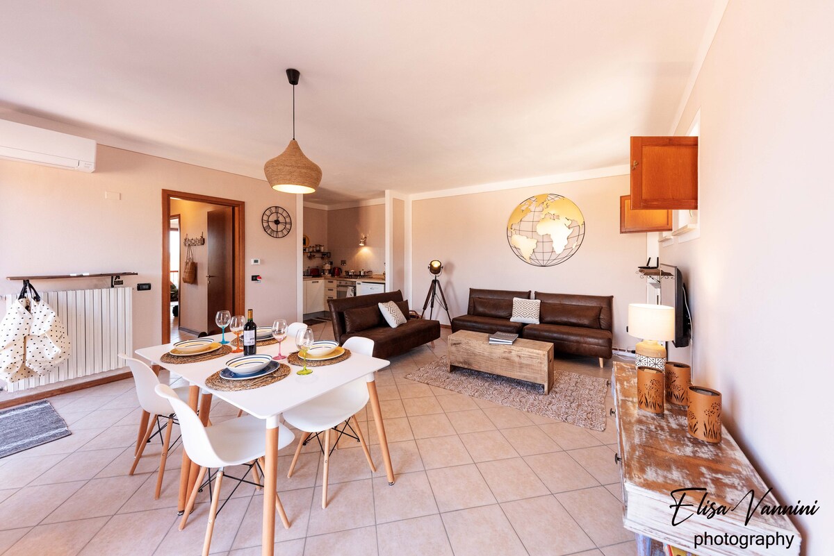 Merülj el a Valdera dombok panorámájában az erkélyünkről – tökéletes pároknak, borkedvelőknek és kulturális felfedezőknek. A toszkán dombok között elterülő bájos apartman az időtlen eleganciát ötvözi a modern kényelemmel. Élvezd a lenyűgöző panorámát a saját erkélyedről, ahol nyugodtan elfogyaszthatod a reggeli kávédat, vagy napnyugtakor egy pohár bort. Merülj el a medencében, lazíts a szoláriumban, és élvezd a vidéki környezet nyugalmát és szépségét.