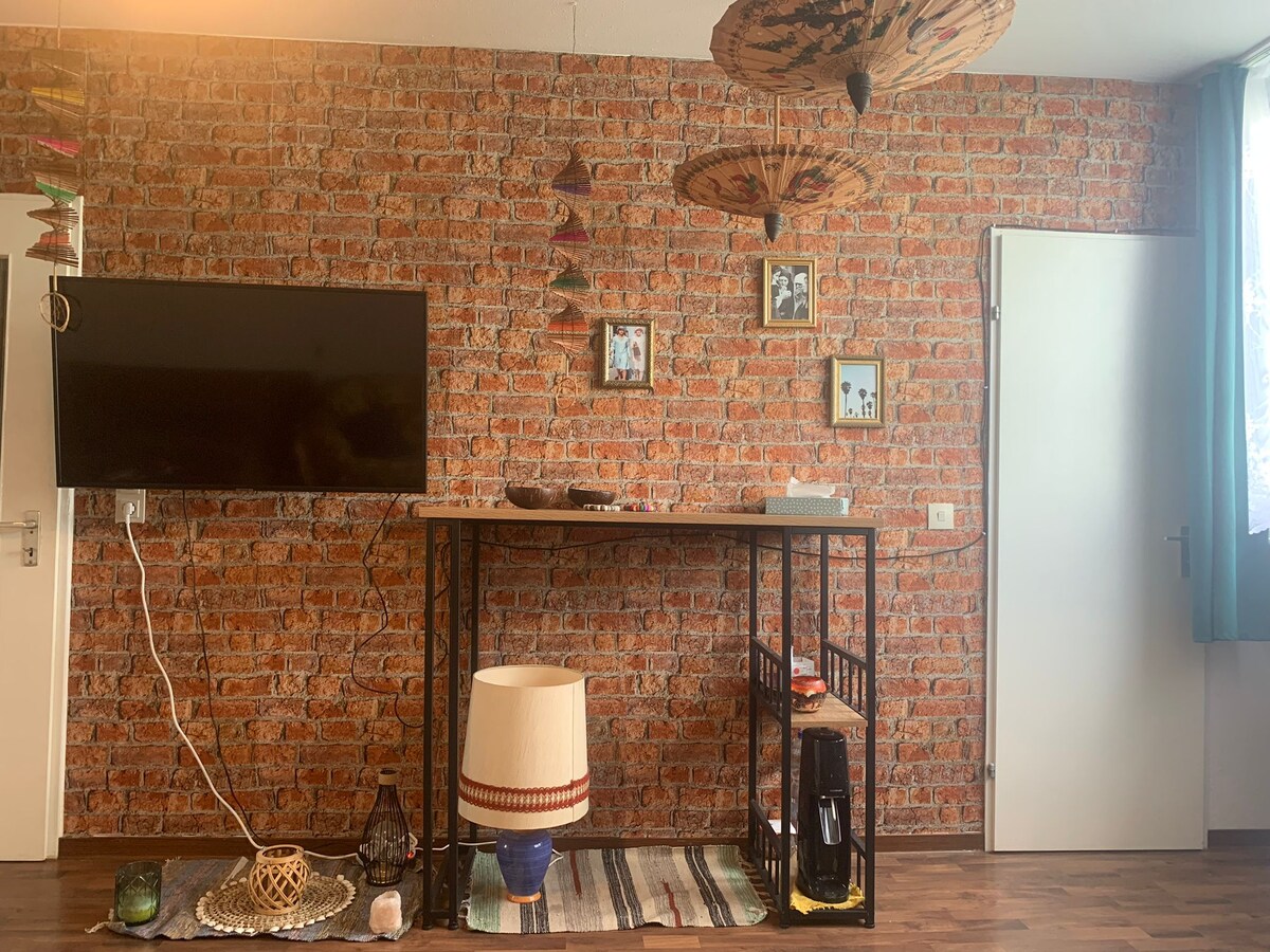 Imádnivalóan felújított, újonnan berendezett, kétszobás lakás kiváló, központi helyen. Ott található, ahol az élet zajlik, mégis csodálatosan csendes. Minden sétatávolságra van a lakástól. Az 1-2 fős ízlésesen berendezett szobák mellett a tágas terasz is pihenésre invitál. WLAN, TV (MAGENTA TV Smart), zenegép, változó világítás, teljesen felszerelt konyha (sütő, mikrohullámú sütő, kenyérpirító, Nespresso gép, vízforraló), hajszárító, éjjel-nappali támogatás.