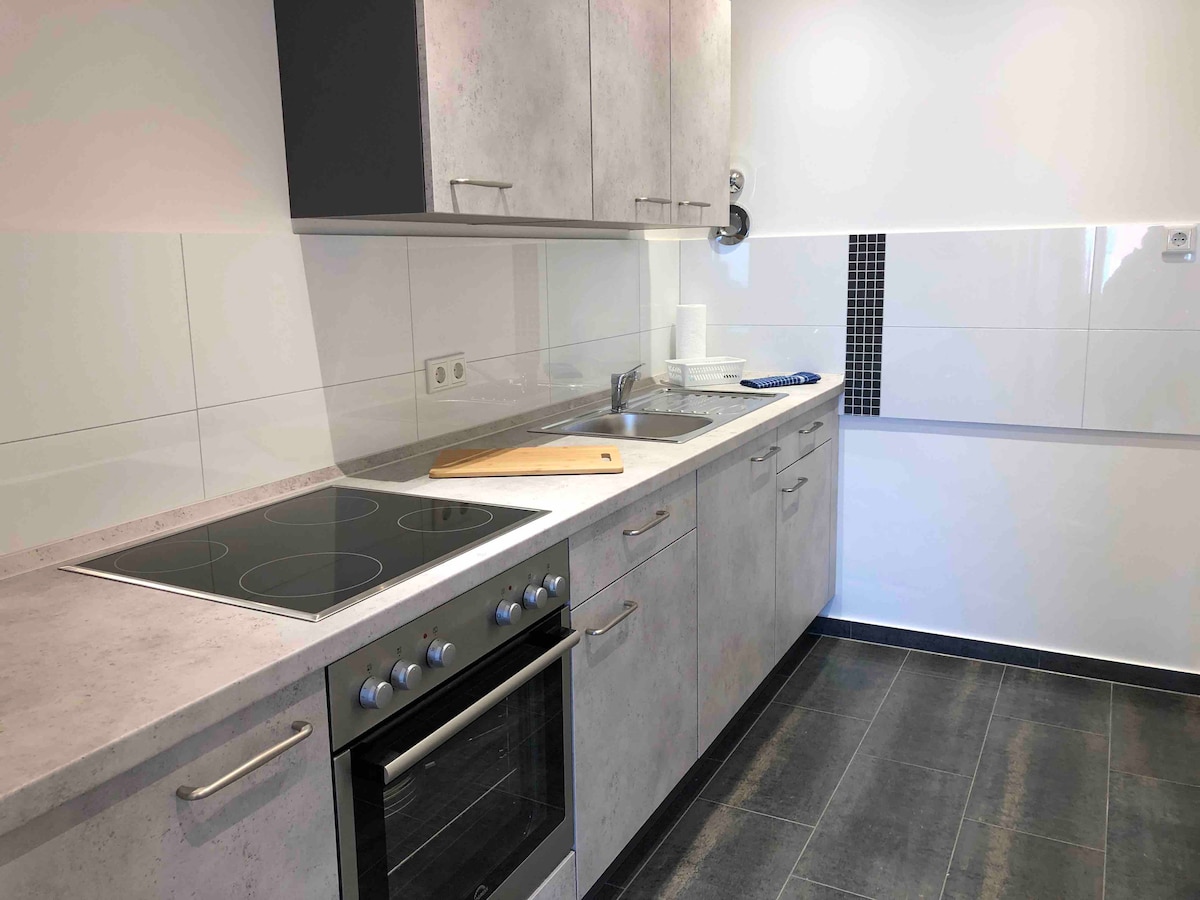Tágas és világos, egy hálószobás apartman (26 m²) teakonyhával és külön fürdőszobával, gyalogos távolságra több villamos- és buszjárattól, valamint a Köln-Ehrenfeld vasútállomástól. A lakás egy csendes lakóutcában található, egy XIX. századi régi épület első emeletén. Az elülső udvarban – közvetlenül a lakás előtt – egy kis terasz is található két kerti székkel és egy kis asztallal, amelyet kizárólagosan használhatnak a vendégek.