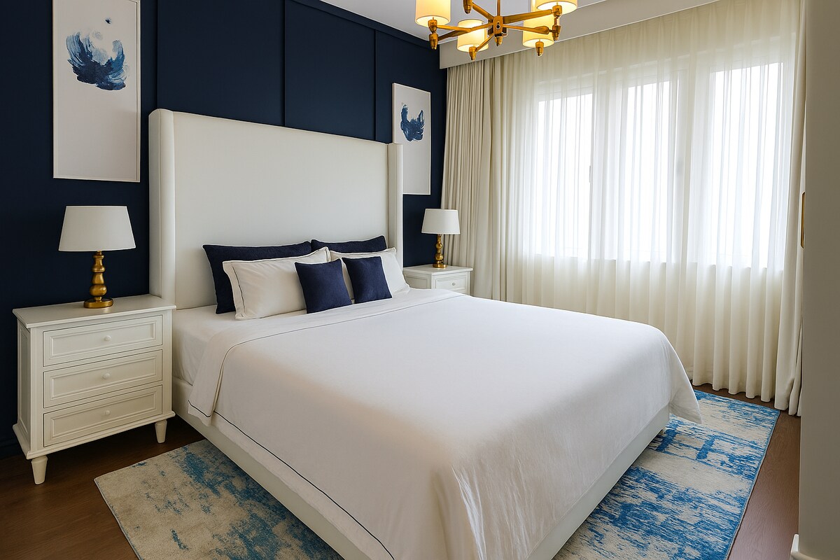 Éld át a luxust a Vistabluban, egy magas emeleti dizájnerlakásban, ahonnan gyönyörű kilátás nyílik a városra. A puha, kényelmes queen méretű ággyal és stílusos kanapéval elegánsan fogad akár három vendéget. Élvezd a modern, elegáns belső teret, a gyors Wi-Fi-t, a mosó-szárítógépet és a stílusos konyhát. A komplexumban prémium edzőterem, medence és mozi is található. Néhány lépésre van egy szupermarket és egy kávézó, könnyen megközelíthető a Lotus Tower, a Port City és Colombo legnépszerűbb látnivalói.