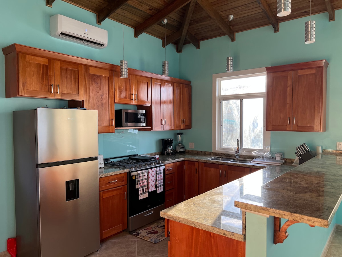 Reconnect with nature at this unforgettable escape. this tiny home is extremely functional and has all the modern amenities, yet still allows you to connect with nature and almost every direction. and each angle of the house you'll be able to enjoy the beautiful nature of Bocas Del Toro while enjoying the comforts of air conditioning and the beautiful King size bed. we're nestled in the jungle and a shaded area but just steps away from some of the best surf and snorkeling on the island.