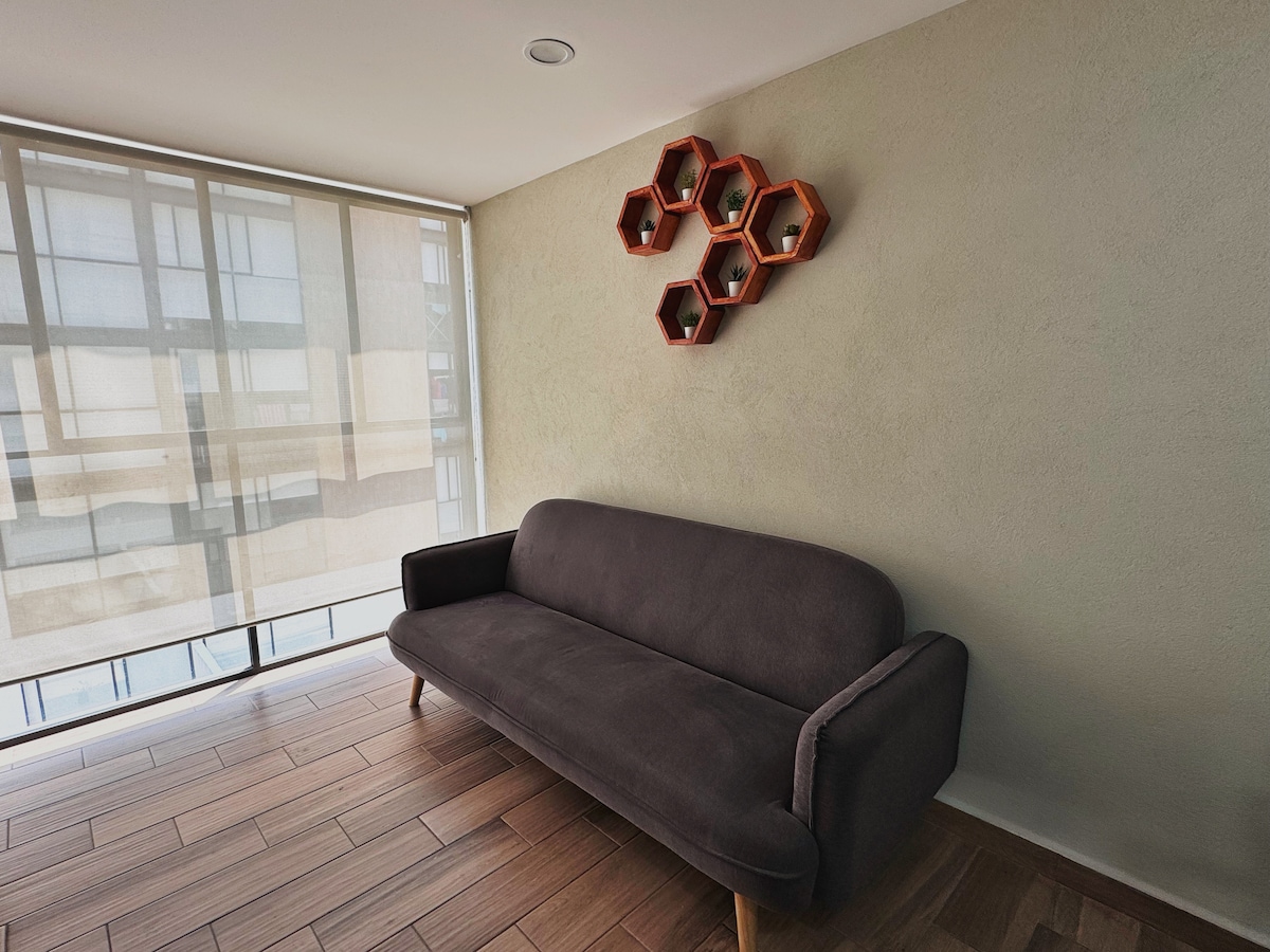 Modern és kényelmes lakás Mexikóváros szívében, erkély és terasz, turistáknak vagy üzleti utazóknak. Közel a Reformához, a történelmi központ, a Zócalo, a Bellas Artes, a Zona Rosa, a Garibaldi, a Santa María la Ribera és a Vasconcelos könyvtár közelében. Két hálószoba, egy kanapéágy, egy felszerelt konyha, egy kilátással rendelkező erkély, gyors Wi-Fi, egy okostévé, egy asztal, egy mosógép és parkoló található benne. Pár percre a metrótól, a metróbusztól és az AIFA-ra és az AICM-re közlekedő elővárosi vonattól. Tökéletes.
