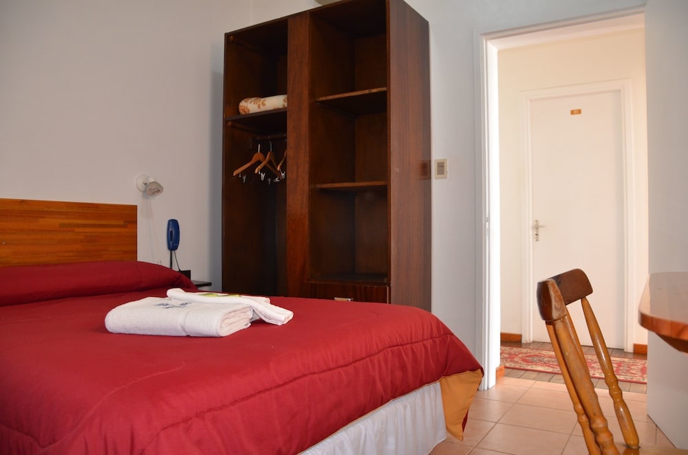 Cuenta con, wifi, baño privado, tv cable, aire acondicionado, cofre de seguridad y secador de pelo. En áreas comunes cuentan con heladera de uso compartido, jarra eléctrica, dispenser de agua a disposición las 24hs. El horario de ingreso es de 13:00hs. a 23:30hs. (para realizar el check in), después de hora el ingreso y egreso del hotel es automatizado. El check out es hasta las 10 am, después de hora si desean pueden dejar maletas, pasar al baño de uso compartido, etc. NO INCLUYE DESAYUNO