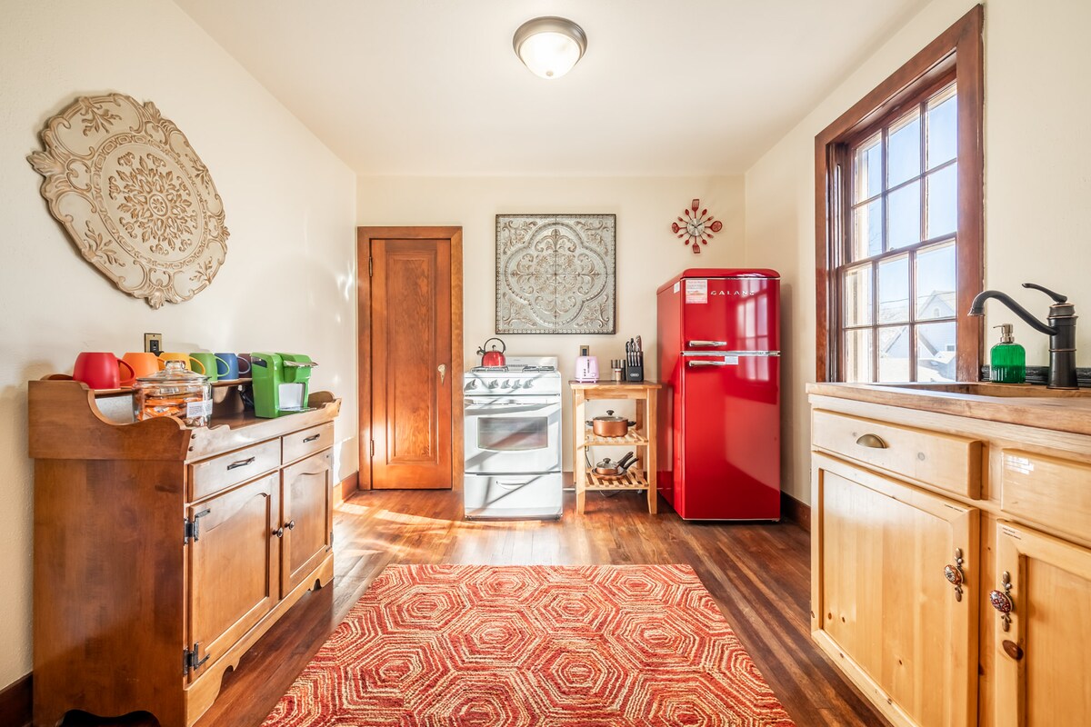 Üdvözlünk a Colorado Springs történelmi Old North End negyedének szívében található fészkünkben! Ez a kifogástalanul felújított otthon zökkenőmentesen ötvözi az időtlen bájt a modern luxussal. A teljes csoport könnyen hozzáférhet mindenhez erről a központi elhelyezkedésű helyről. ➜ Az I-25-höz közel ➜ Rövid autóút vagy biciklizés a belvárosba és az Istenek kertjébe Bérelhető ➜ robogók és elektromos kerékpárok a közelben ➜ Teljesen feltöltött konyha mosogatógéppel, turmixgéppel, Keuriggel stb. ➜ Mosoda ➜ 24 órás kulcs nélküli bejárat ➜ 65"-es okostévé ➜ Légkondicionáló.