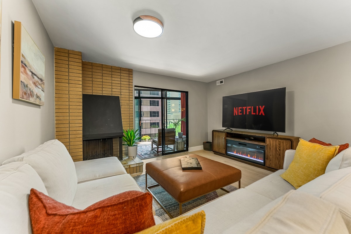 Experience upscale, mid-century modern design in a high-rise in the heart of LoDo. Floor-to-ceiling windows and a Juliet balcony offer stunning views of downtown. Amenities include 24/7 staffed front desk, free parking (dedicated spot), fireplace, king-size bed, and fully equipped kitchen with an array of coffee and tea options. Just a quick walk away are countless restaurants and attractions, including Ball Arena (15 min), Coors Field (8 min), Union Station (5 min) and 16th Street Mall (5 min).