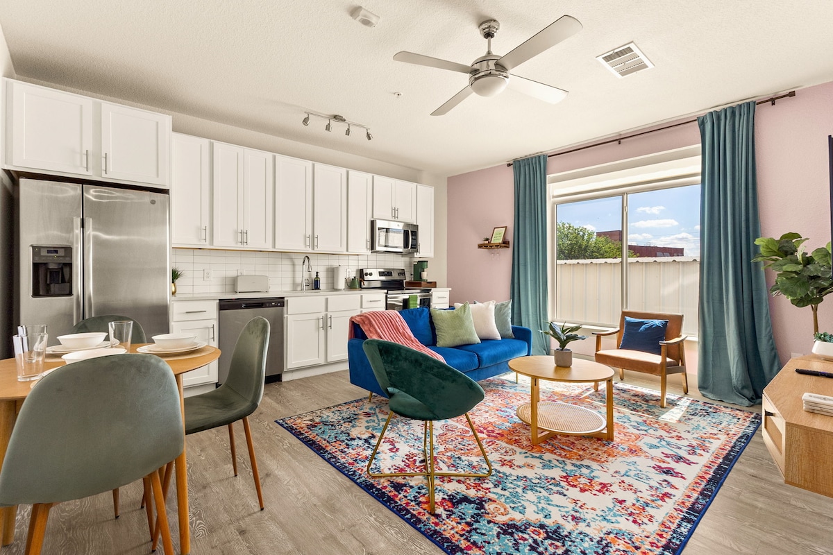 Lépj be az üdülőhelyi életbe ebben a dizájner 2 hálószobás/2 fürdőszobás lakásban San Antonióban – Zenful Affirmations. A kapuval, csillogó szabadtéri medencével és modern edzőteremmel, valamint kényelmes bútorokkal rendelkező apartman ideális hosszú távra. Minden benne van – minden közmű, gyors Wi-Fi, konyhai eszközök, tisztítószerek, teljes méretű mosógép/szárítógép –, így gond nélkül berendezkedhetsz. Kisállatbarát is! Alig várjuk, hogy üdvözölhessünk a Zenful Affirmations programban!