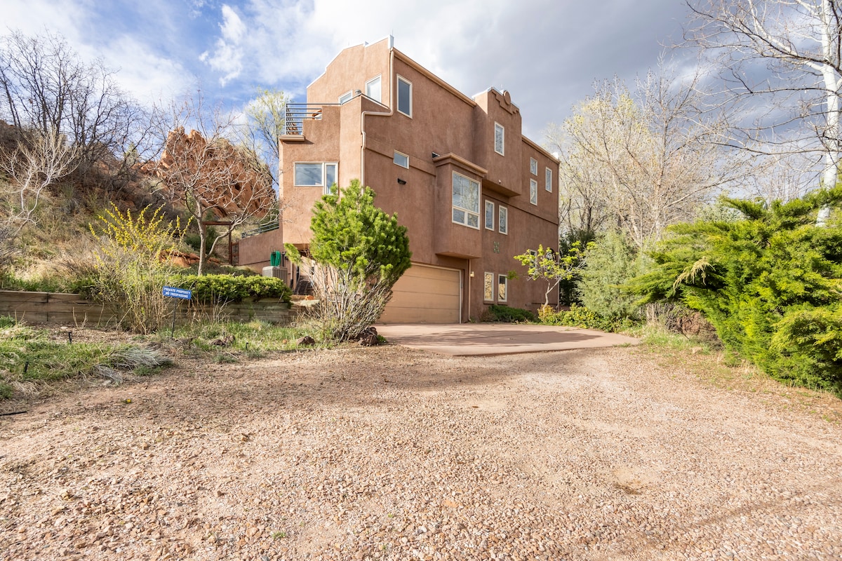 This custom home is nestled amidst red rocks and lush natural landscaping. Only a 5 minute drive to the Garden of the Gods Visitor Center, historic Old Colorado City and Manitou Springs. 2 master suites upstairs, plus two additional lower level sleeping spaces with half baths. Gourmet kitchen, full size laundry, Wifi, 50" Smart TV, all you need to feel at home after exploring all that Colorado Springs has to offer! STR Permit #A-STRP-25-1061