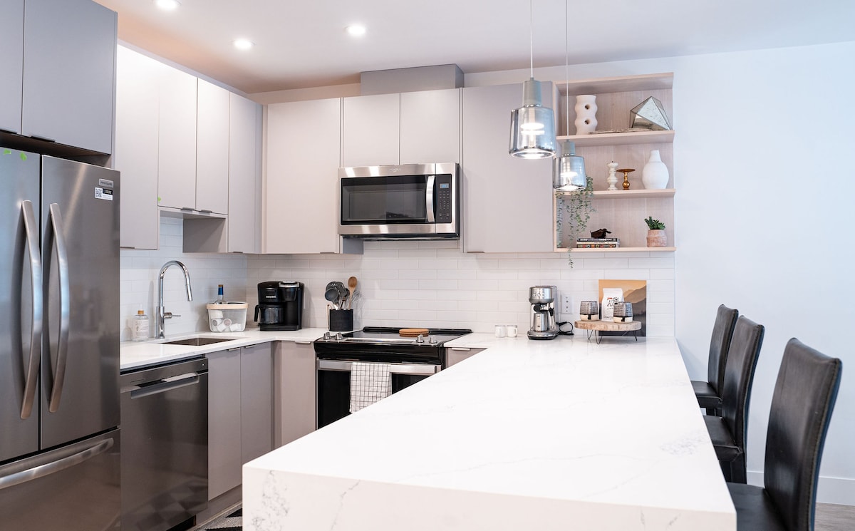 Újonnan épült hegyi élet, osztott szintű társasházi lakás elegáns, modern építészettel. Két hálószoba, két fürdőszoba - ez a stílusos hely minden kényelmi szolgáltatást biztosít, amire szükséged lehet a kényelmes tartózkodáshoz, beleértve a saját pezsgőfürdődet is. A Revelstoke Mountain Resorttól mindössze 3 km-re és Revelstoke belvárosától 4 km-re található lakás a modern szerelvényeket a tökéletes kényelemmel ötvözi. Privát garázs, fűtött fogaskerékszoba, amely tökéletes a sílécek és csizmák tárolására a lejtőkön eltöltött nap után - ez a társasházi lakás lépcsőkkel rendelkezik