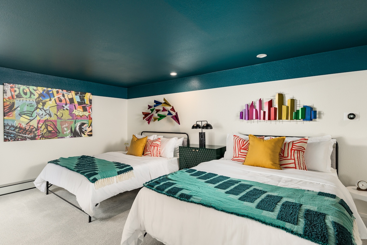 This one-of-a-kind, super fun modern pop art themed house is sure to inspire! The luxurious house sits 9 min from Downtown Denver and sleeps 17 in beds, with 3700 square feet of living space on a huge 1/3 acre private lot. It features 6bd/3ba, a fully equipped kitchen and separate kitchenette, living room, game room with arcade, and movie room with a 4K 100” screen and surround sound. The outdoor area is perfect for gathering, with covered seating around a fire pit and a full outdoor dining set.