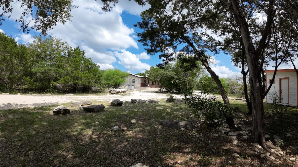Éld át a nyugodt, „visszatérés a természethez” élményét! Látványos kilátás és sok vadon élő állat! Romantikus, eldugott, szépen berendezett ház, ahol minden megvan, amire szükséged lehet! Élvezd a helyi borászatokat, vagy nézd meg a fehérfarkú szarvasokat, tatukat, rókákat, vaddisznókat és South TX ritka madarakat az ingatlanban! A legtöbb vendég megjegyzi a csendet és a csillagokat az égen! Túrázz a birtokunkon, látogasd meg a borászatokat, tedd meg a közeli egynapos kirándulásokat, vagy csak PIHENJ!