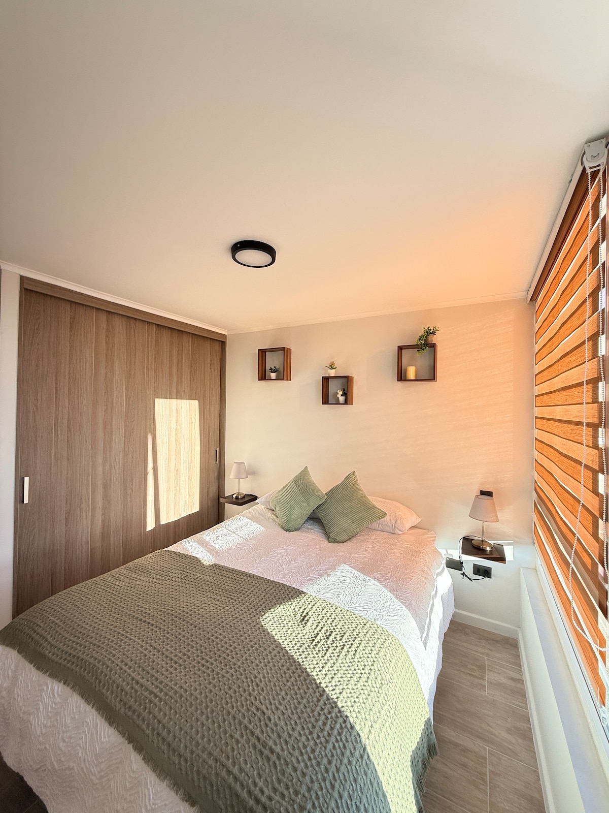 Disfruta de una experiencia con estilo en este alojamiento céntrico, cómodo y full equipado: - Ideal para 2personas - 1 cama queen + 1 futón - Wifi, SmartTV+3000canales(fútbol incluido)Netflix - Cocina full equipada. El edificio ofrece gimnasio y sala de cowork. A 3min del terminal, estadio, universidades, lavandería, farmacias y supermercados. Con locomoción a la puerta, conectividad ideal. Cuenta con conserjería 24/7. Perfecto para descansar, trabajar o explorar la ciudad.
