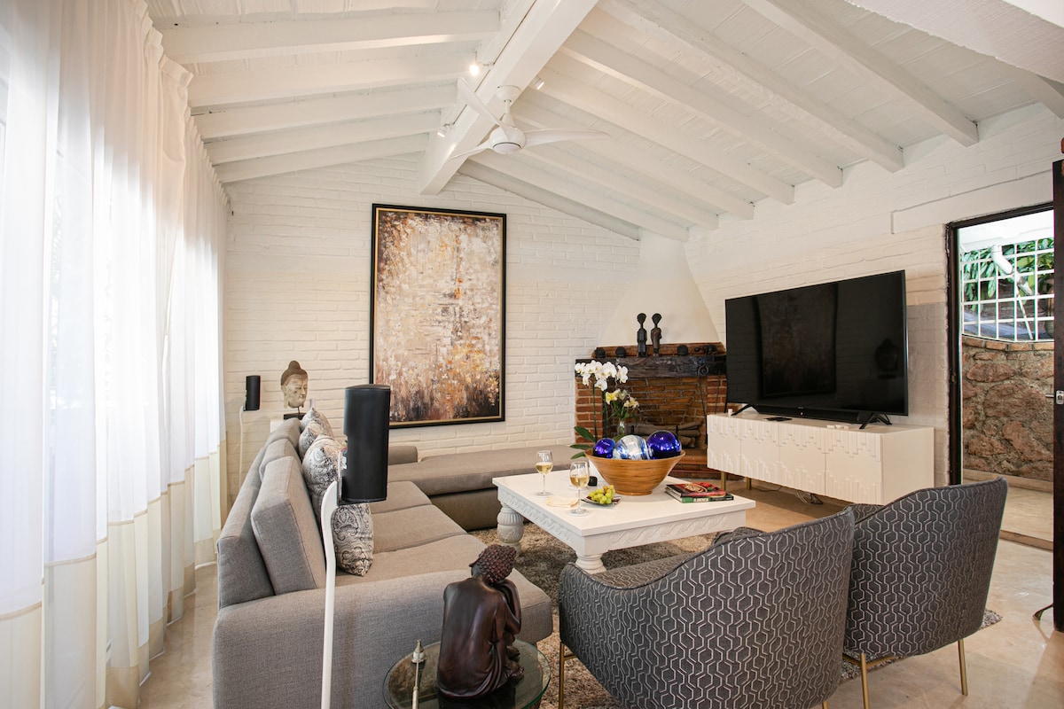 A Vallarta szívében, a Gringo Gulch néven ismert, nyüzsgő negyedben található Villa Leonarda egy békés oázis a tökéletes nyaraláshoz egy laza, de elegáns környezetben. A Malecóntól (sétánytól) mindössze néhány háztömbnyire található, a Cuale folyó partján épült szálláshely ideális családok vagy baráti társaságok számára. Rövid sétára van a Malecóntól és a fő strandoktól, a kiváló éttermektől és a bájos üzletektől. *A hatodik hálószobát akkor kínáljuk, ha 10-nél több vendég érkezik. (Az ár emelkedik.)