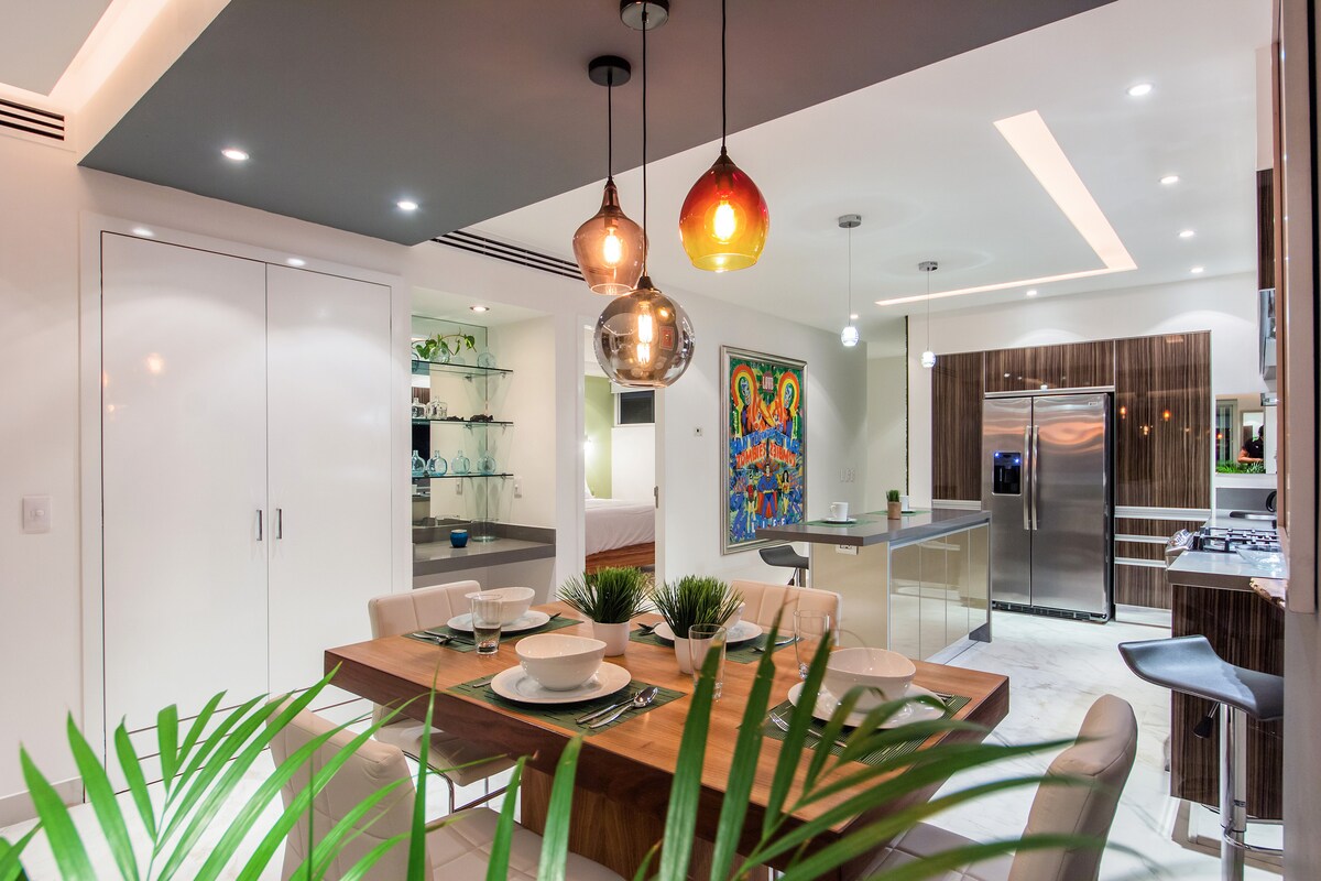 Eddz egy edzőteremben, miközben a teljes hosszúságú ablakokon keresztül nézed a város és a hegyek hátterét. Ússz a tetőtéri végtelenített medencében, ahogy a nap lenyugszik. A lakásban szép kilátás nyílik az erkélyre, és sok érdekes objets d'art van benne. Ez egy egy hálószobás, két fürdőszobás lakás. A nappaliban queen méretű ágy lesz. Ágynemű, valamint törölközők és alapvető piperecikkek állnak a vendégek rendelkezésére. Érkezéskor a barátságos épület személyzete fog bánni veled. Megmutatják a lakást, és bejárást biztosítanak. Megmutatják neked a lakás által kínált összes kényelmi szolgáltatást. Ha segítségre van szükséged a szálláshelyen eltöltött időd során, a recepció személyzete a rendelkezésedre áll. A Condo Navila sétatávolságra található a strandtól és a folyótól, valamint számos butiktól. A Romantikus Zónában található a város legnagyobb étterme és bárja, az utcákon továbbra is élénk mexikói nyüzsgéssel. A gyaloglás lesz a legjobb közlekedési mód, de könnyen kaphatsz taxit vagy Ubert az épületen kívül. A buszok körülbelül két háztömbnyire járnak (így nincs buszhang).