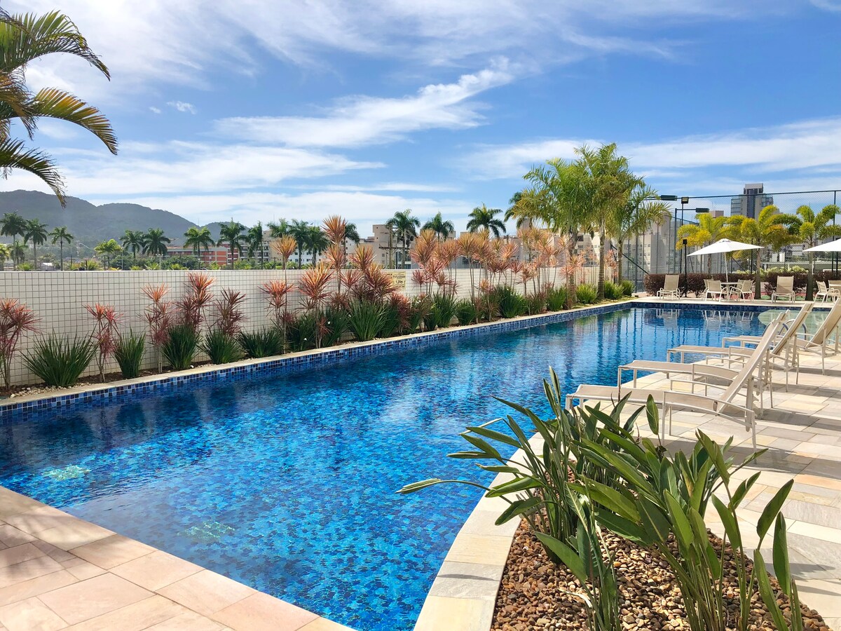 Ez az 55 m²-es apartman ideális párok és üzleti úton lévő vezetők számára. Minden megvan benne, amit egy lakástól elvárhatsz: praktikusság és technológia. Ha azért jössz, hogy a szilvesztert Santosban töltsd, az ünnepségeket az épület elhagyása nélkül is élvezheted. A medencetérből élvezheted a tengerre nyíló kilátást, a tűzijátékot és a város ünnepi hangulatát anélkül, hogy a forgalom, a tömeg vagy a tűzijáték utáni fárasztó ingázás miatt aggódnod kellene.