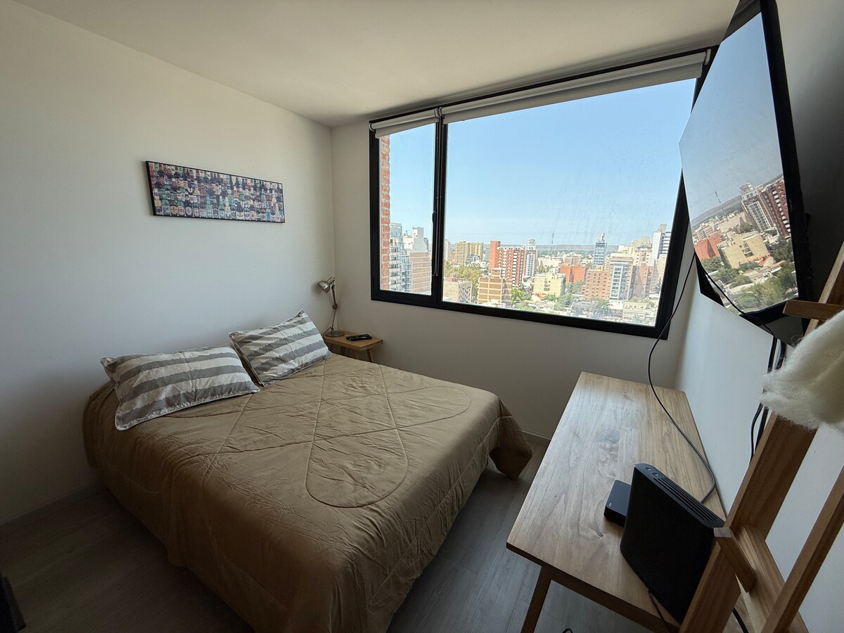 Szállj meg Neuquen Capital szívében, amely vadonatúj, világos és verhetetlen kilátást nyújt! Teljes magánszféra. Csak 3 háztömbnyire a városunk főutcájától. Érezd jól magad a szálláshelyen, minden kényelmet biztosítunk, hogy otthon érezd magad. Teljesen felszerelt konyha, ágynemű, vasaló, egyéni Wi-Fi, légkondicionáló, okostévé, terasz grillezővel. Alig várjuk, hogy találkozzunk!