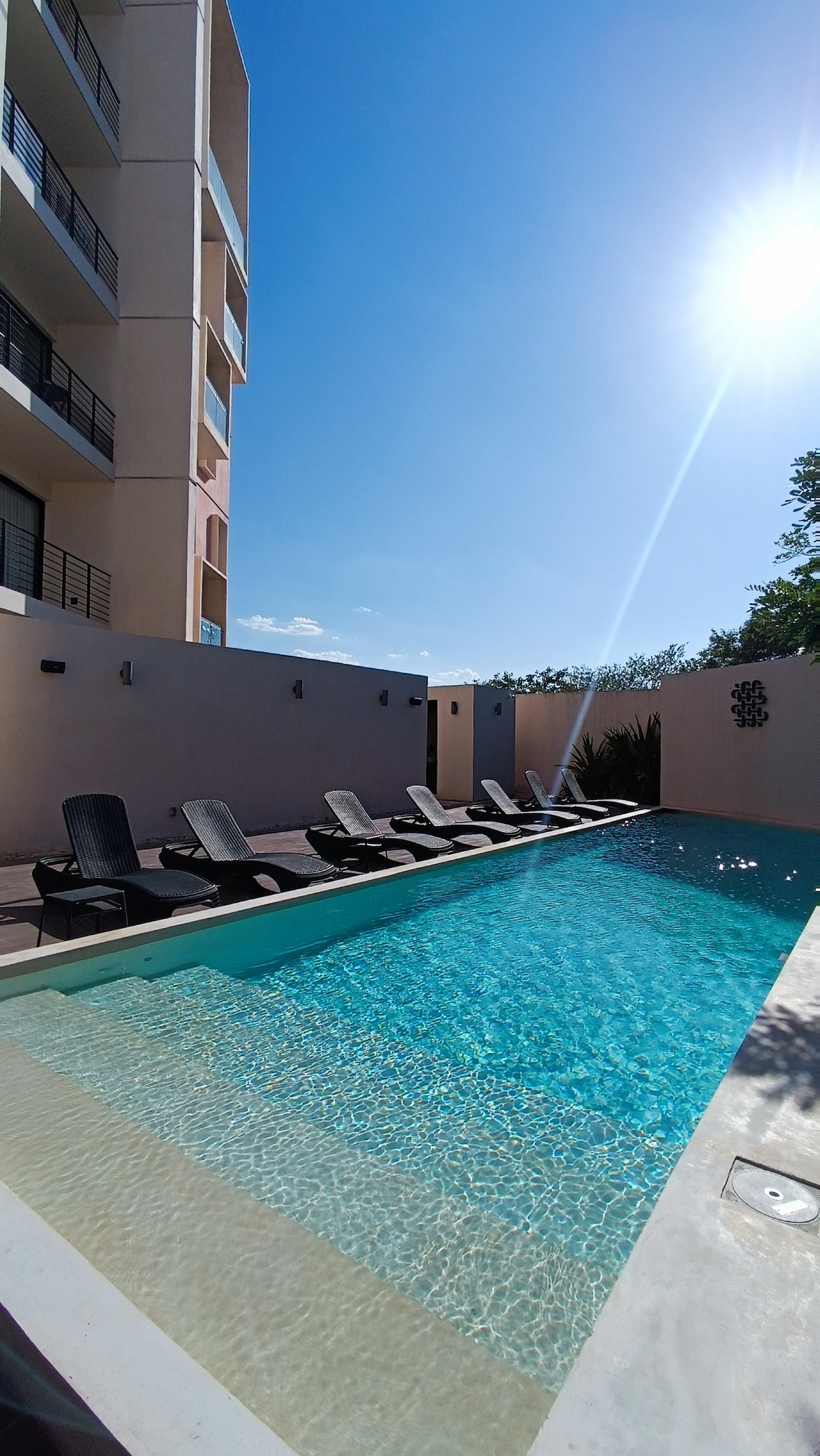 Bienvenido a tu refugio en Temozón Norte, una de las zonas de mayor crecimiento en Mérida, que aún conserva su tranquilidad y entorno natural. Nuestro departamento de una habitación es ideal para descansar y disfrutar: cuenta con cama king size, closet, baño privado y un cómodo sofá cama matrimonial en la sala para huéspedes adicionales. Disfruta de tu propia piscina privada en la terraza o aprovecha las amenidades del edificio como el gimnasio, piscina común, pet park y salón de eventos.