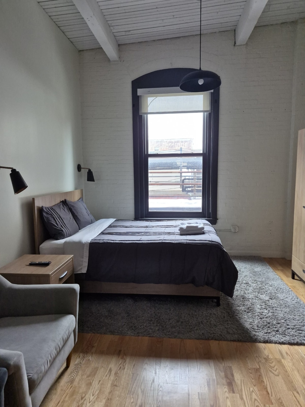 Kick back and relax in this calm, stylish space. This studio apartment offers fast internet, TV , a comfortable couch , a stylish new bathroom, a lovely kitchenette, as well as black out curtains in the bedroom. And a cozy warm fireplace. This apartment comfortably sleeps 1 adult or a couple. The couch folds out into a bed and there is bedding in a tote stored Under the bed.