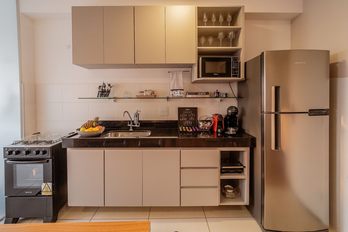 Apartamento completo, confortável e bem localizado