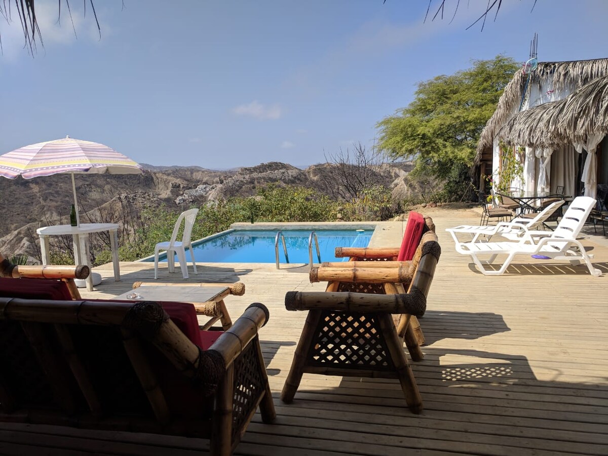 Ven a conocer un lugar muy especial de la costa norte del Perú. Disfruta unos días de relajación bajo el sol Tumbesino que brilla todo el año. Ambiente hogareño, iluminado y espacioso. Alejado del centro de la ciudad (45 min en carro), pero con acceso a tiendas a 5 min caminando y Zorritos se encuentra a 20 min en auto. Posee 2 cuartos matrimoniales con baño propio y 3 cuartos con camarotes y baño compartido. Piscina de 5x3 m y profundidad de 1.2 m a 1.7 m. Cochera pequeña.