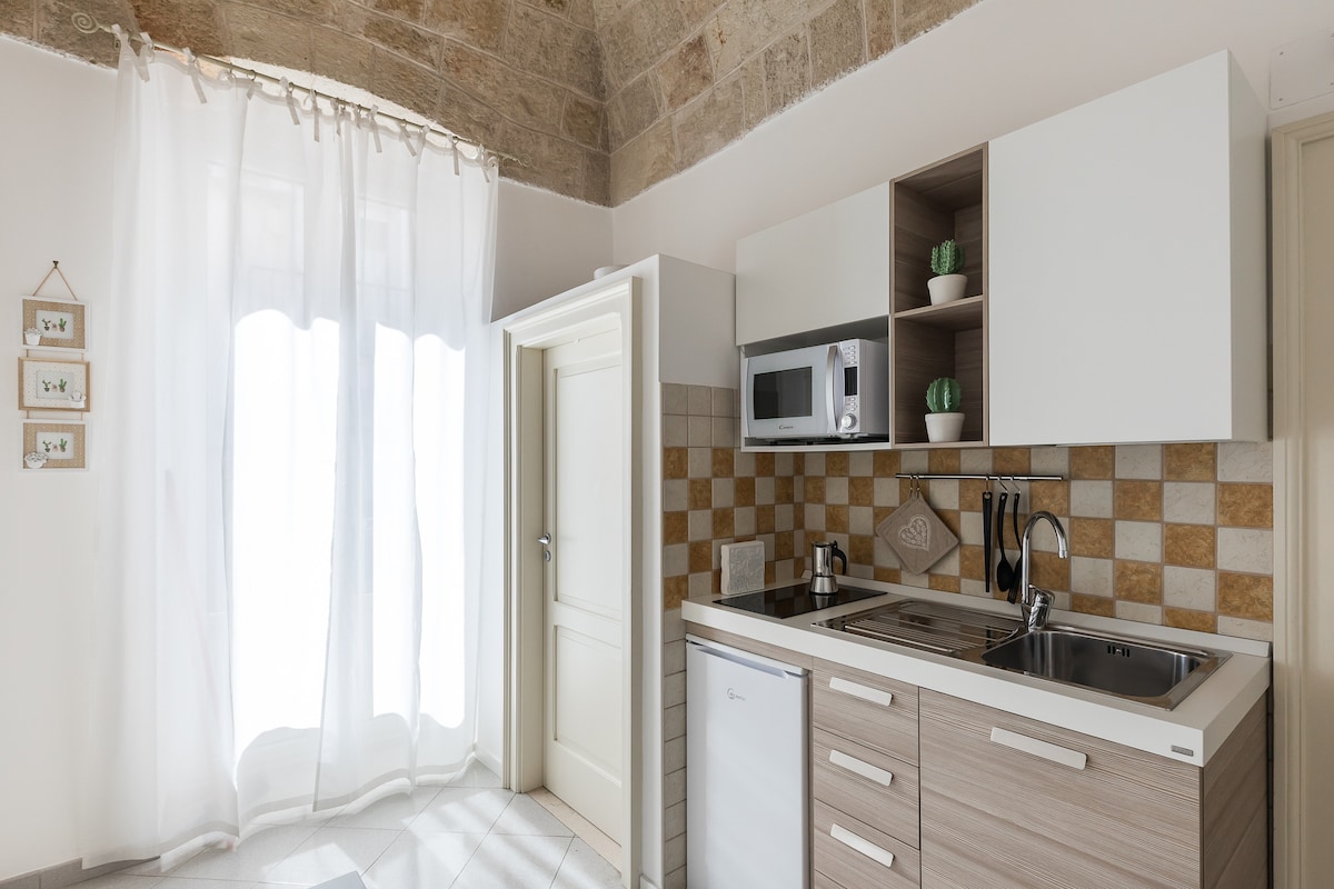 A belváros szívében található egy gyönyörű, hagyományos, különálló otthon, amely világos és kényelmes, és egyedi hangulatot teremtő, bájos tufakőből készült hordás boltozatokkal. A szálláshelyen egy hangulatos hálószoba, egy teljesen felszerelt konyha, egy fürdőszoba, két erkély és egy nagy terasz található, amely tökéletes a pihenéshez. Wifivel és légkondicionálóval felszerelve. 20 méterre a Piazza Aldo Morótól, 50 méterre a történelmi központtól és rövid sétára Lama Monachile-tól. Tökéletes elhelyezkedés: központi, de csendes, privát szférát és kényelmet kínál, ideális pároknak és pihentető vakációkhoz