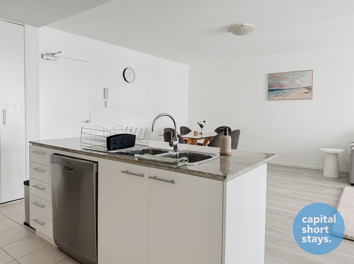 Üdvözlünk tágas, egy hálószobás, padlótól a mennyezetig érő ablakokkal rendelkező lakásunkban, amely egy csendes utcában található. Az apartman biztonságos földalatti, ingyenes parkolási lehetőséggel rendelkezik. Mindössze 2 perc sétára a legközelebbi buszpályaudvartól, ahol a Woolworths Metro szupermarket és a földszinten különböző étkezési lehetőségek találhatók. Tegyen egy kényelmes, 5 perces sétát a Belconnen-tó festői partjaihoz. Ideális azoknak a pároknak vagy egyedül utazóknak, akik kényelmet és nyugalmat keresnek Canberrában.
