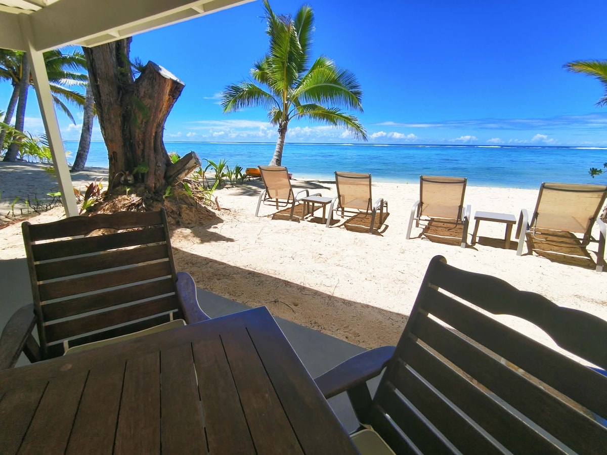 A charming 2-bedroom bungalow located beachside at Titikaveka! Quiet peaceful location in a garden setting right on the Titikaveka's sandy beach & turquoise lagoon with impressive snorkeling spots. BBQ on deck. Shared kayaks. Sunloungers. Outdoor Dining & Lounge. 2 Cafes nearby. ** Kindly ensure you have data on your mobile phone so you can use google maps to find the property if you are arriving Rarotonga at night * Free Starlink Wifi *