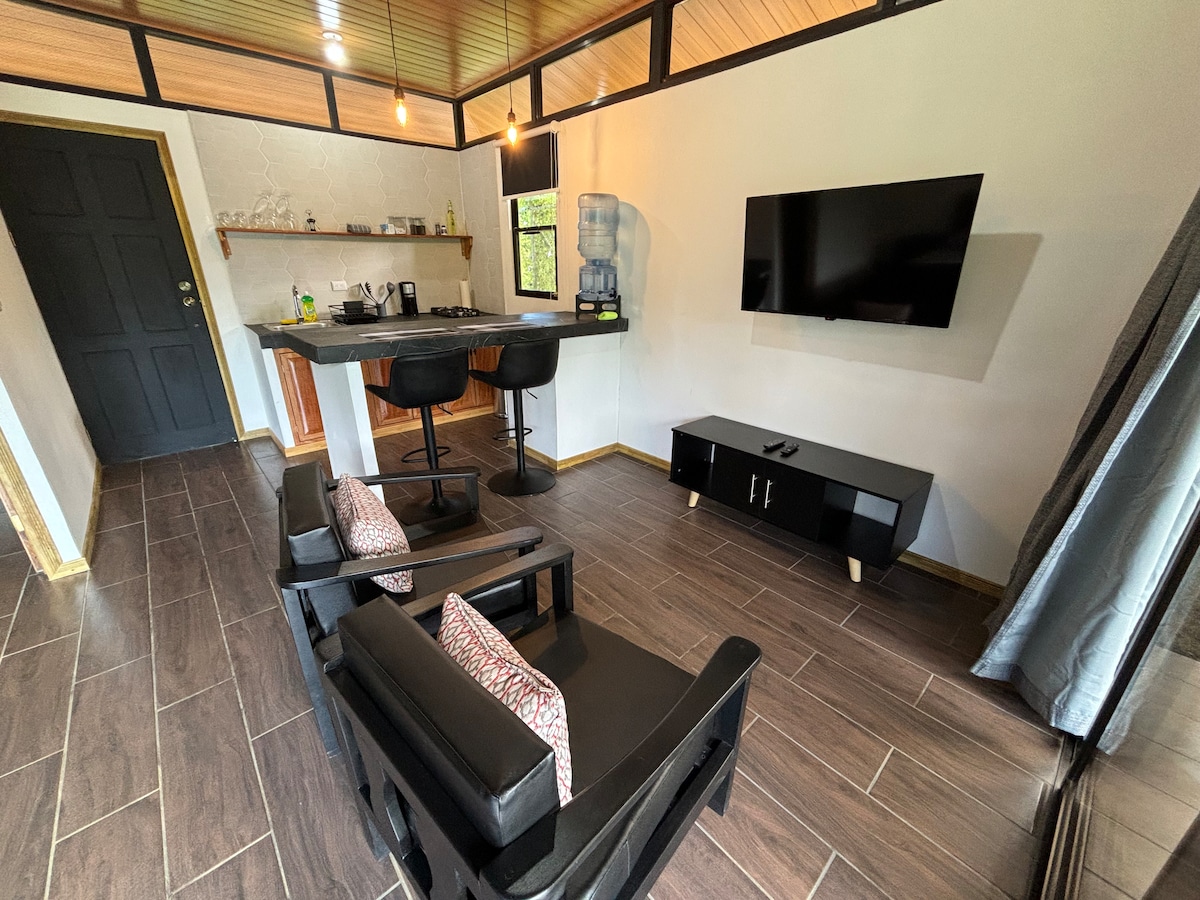 Ez a stúdióapartman, amely mindössze 400 méterre található a gyönyörű Colonia vagy Chamán strandtól, minden szükséges kényelmi szolgáltatással rendelkezik az Uvita területén eltöltött pihentető tartózkodáshoz. A régióban számos vízesést, természetes medencét és különleges szépségű strandot tekinthetsz meg.