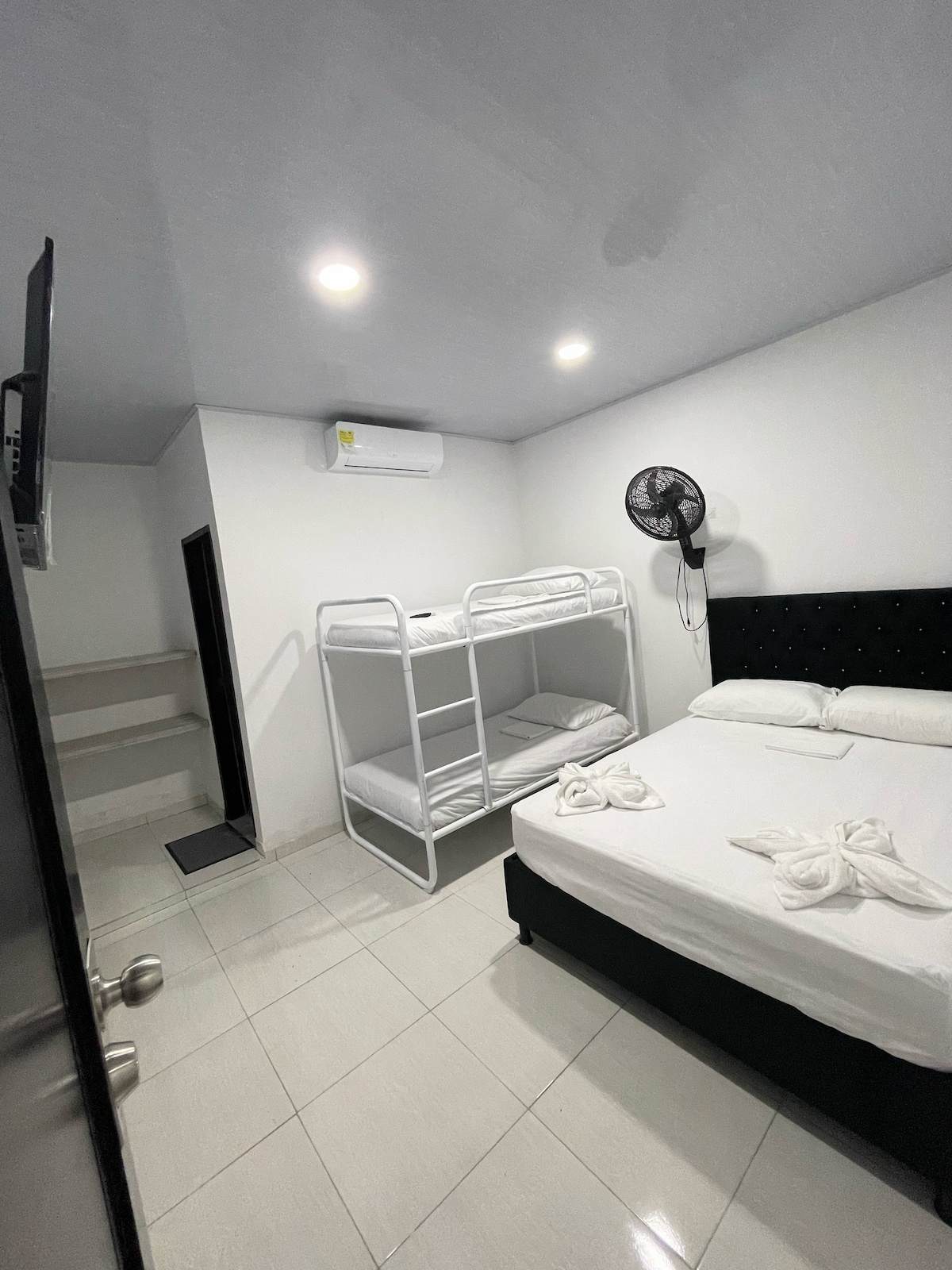 Habitaciones privadas para 1 o 4 personas, incluye cama doble, camarote, baño privado, aire acondicionado y TV. A sólo una cuadra del mar, frente al edificio Arrecifes Coveñas. Sí, es en Coveñas (primera ensenada). Contamos con servicio de restaurante. Todo lo que necesitas para un buen descanso ☀️