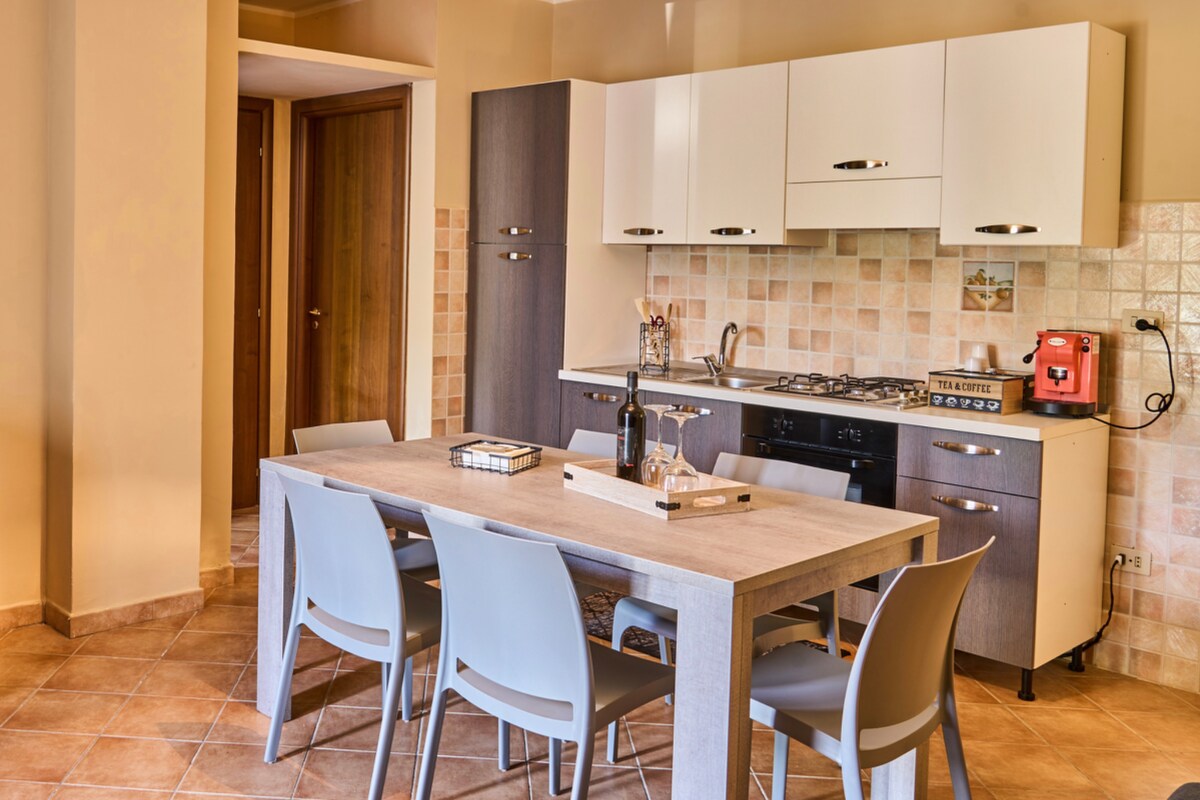 Accogliente appartamento a Corazzo (Scandale), tutto su un unico livello situato all'interno di un'azienda agricola. Dispone di due camere da letto, bagno, cucina attrezzata e ampia terrazza con barbecue, ideale per pranzi e cene all’aperto. Situato in una zona tranquilla, immerso nella natura e circondato da ulivi, perfetto per chi cerca relax e autenticità in un contesto rurale e suggestivo.