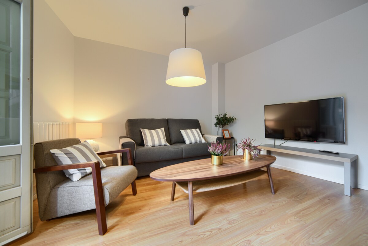 Apartment centrico, 2 minutes walk from the bus and train station, as well as five from the old town, Laurel Street, San Juan, etc. Ground floor renovated recently completed / new, very bright, two rooms with double beds and two sofas beds. Very well located, with many services, supermarket, pharmacy, pre-cooked and butchery under the house. Wifi fiber optic 50 megas.Calefación and hot water of individual gas. Clean, quiet and comfort in the center of Logroño.