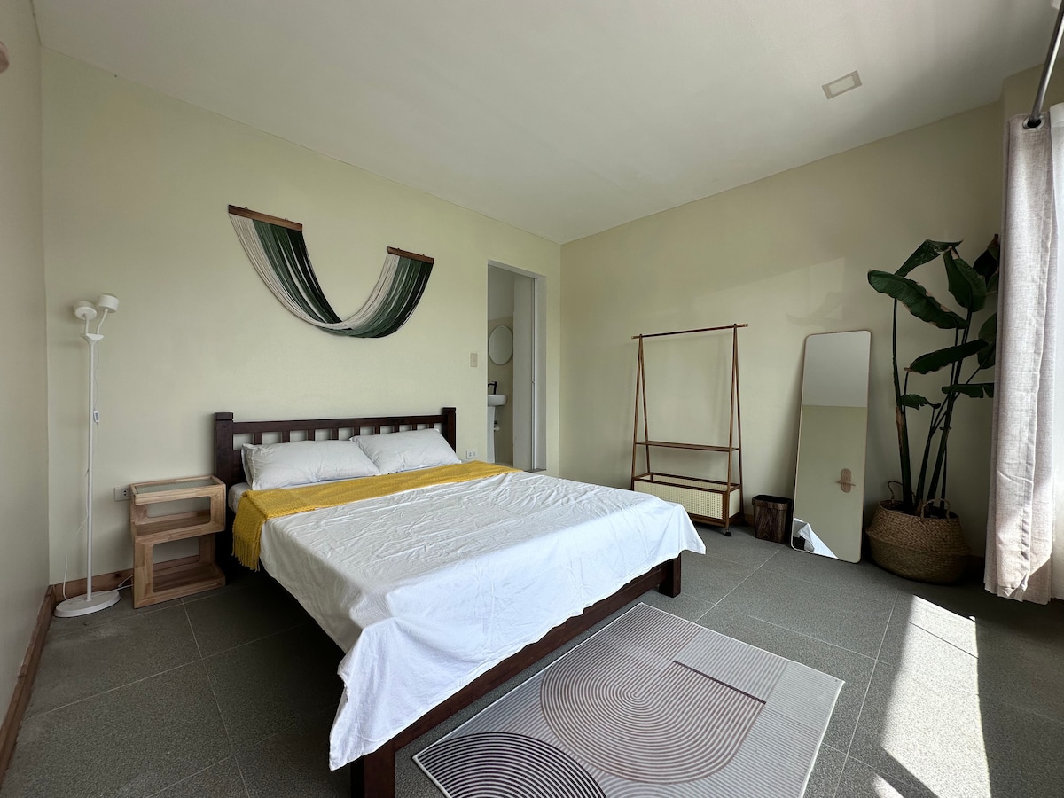 Központi helyen, újonnan épült stúdiószoba, amelyet a természet és egy kis erdő vesz körül. A szobában saját fürdőszoba, konyha és légkondicionált hálószoba van queen size ággyal (élvezze a szuper kényelmes európai szabvány matracot). Az emeleti nagy közös fedett teraszról gyönyörködhetsz a Tapyas-hegy látványában. Ez a békés hely rövid sétára található a közeli éttermektől, a minimarttól... Motorkerékpárok bérelhetők. Szigeti túrákat és madártúrákat is szervezhetünk.