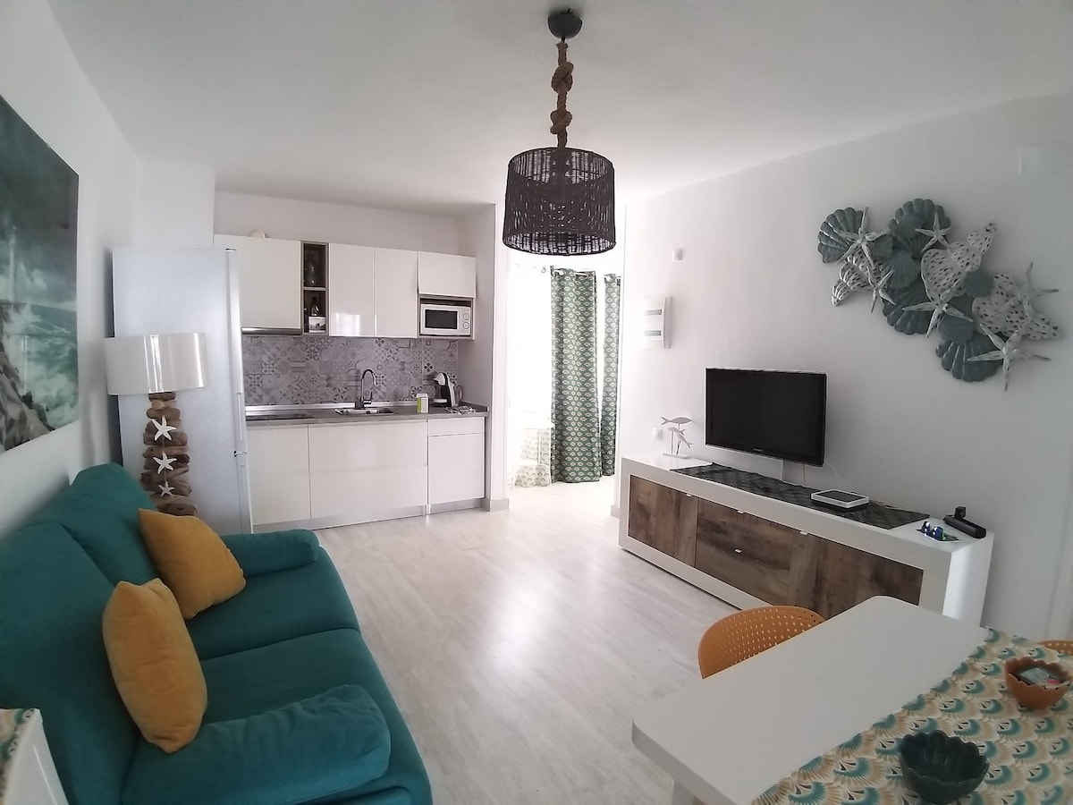 Apartment exclusively for couples with sea view, WIFI, near beaches and in the center of Corralejo. Suite with spacious bedroom with king-size bed and Android TV lcd 32" Spectacular views on both sides, even from the bed, through extensive windows, being able to see the volcanoes and beaches. Full equipped kitchen Included in each stay: Towels: 2 shower towels + 1 sink towel per person Sheets: 1 set of sheets for one week and 2 sets for more than a week Toilet paper: 2 rolls per bathroom