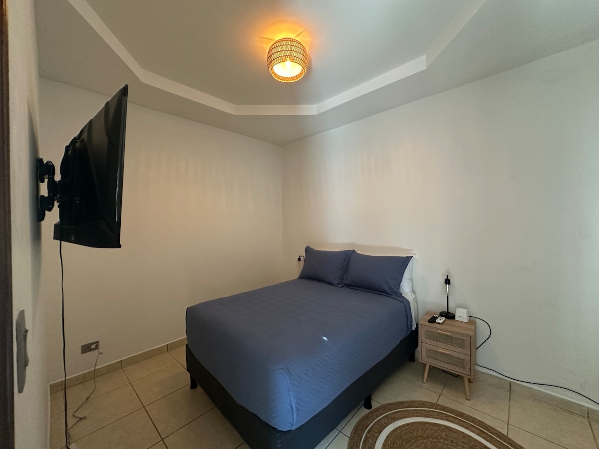 Innovatív apartman San Pedro Sulában, mindössze néhány percre a repülőtértől Egy lakóövezetben található, amely éjjel-nappali biztonsági szolgálattal rendelkezik, ideális a békés és biztonságos tartózkodáshoz. 🛏️ 2 hálószoba queen méretű ággyal, légkondicionálóval, szekrényekkel és tévével 🛁 2 teljes fürdőszoba Netflixet 📺 is tartalmaz, így élvezheted a kedvenc műsoraidat és filmeidet Csak 1 jármű számára van🚗 parkolási lehetőség (második autó nem engedélyezett) 👥 Maximális kapacitás: 4 vendég 🚫 A látogatók nem engedélyezettek