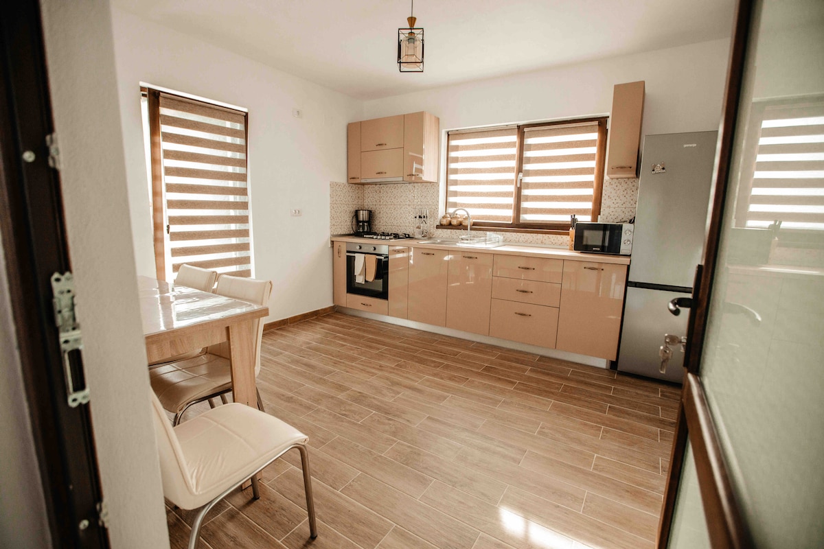 Welcome to Eleni Rezidence 1, your favorite accommodation in Brasov! This exquisite one-bedroom apartment efortlessly combines unique style with exceptional comfort. Enjoy custom-made furniture and a cozy living room featuring a sofa bed and a 138cm Smart TV. Step out onto the furnished terrace, where you can relax and take in spectacular mountain views. The fully equipped kitchen is complemented by modern amenities and well-appointed decor throughout the apartment. Book your stay now! ✨