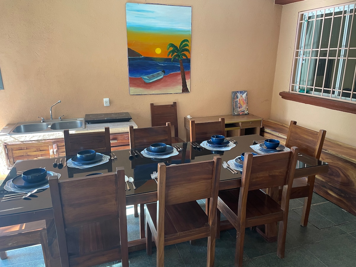 Lélegzetelállító panoráma kilátás nyílik a Zihuatanejo öbölre a Playa La Ropa felett. Teljesen felszerelt konyha,TV/VCR,helyi telefon, internetsebesség 155, king méretű ágy, légkondicionáló az ágyszobában,egyszerű séta a tengerpartra és a taxik vissza. Az utcáról lépcső vezet, és az érkezésed előtt el tudod végezni az ételek elkészítését. Rendelkezésre áll egy sofőr is, ha szeretnéd, de a házban van egy helyi telefon, amelyről hívhatsz taxit.