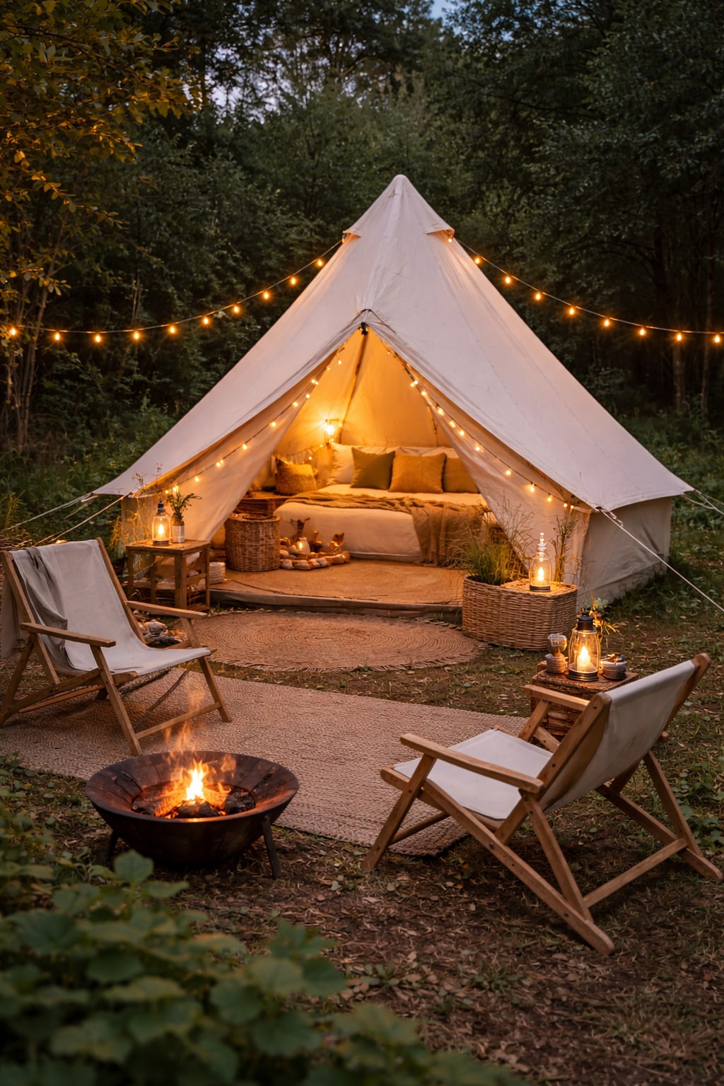 Egy privát erdős parkban található kunyhós sátrunk magánéletet és nyugalmat kínál. Fedezd fel ezt az atipikus és elbűvölő helyet egy kiruccanáshoz a családdal, barátokkal vagy párokkal, és élvezd a békés éjszakákat tágas és kényelmes sátrunkban. A gyerekek örömére fedezd fel a szabadtéri területet saját medencével és trambulinnal. Alkonyatkor merülj el egy elvarázsolt és romantikus légkörben a lámpások fényében, és élvezd az édes estéket a csillagos ég alatt.