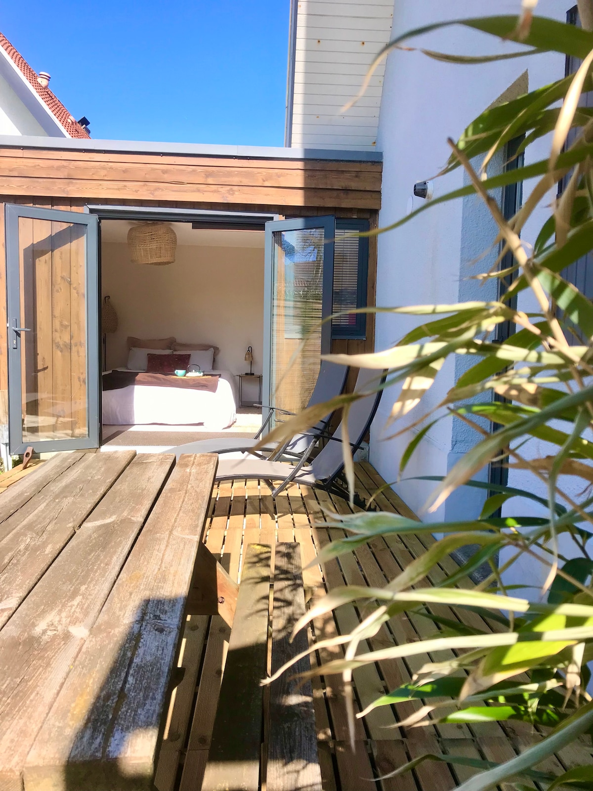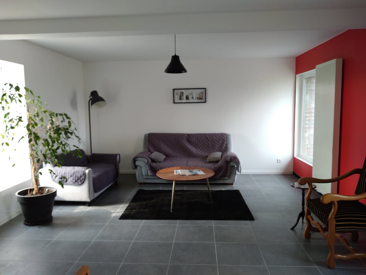 Független, 20 m2-es stúdió, amely a házigazdák ingatlanán található, és egy hálószobát tartalmaz, külön fürdőszobával, zuhanyzóval és WC-vel. Ezen a helyen van egy queen méretű ágy. A Clairmarais erdőtől 400 méterre, csendes környéken vagyunk. A kerékpárok ingyenesen a rendelkezésedre állnak. Van egy terasz és egy étkező, de nincs konyha. A stúdió melletti garázsban hűtőszekrény áll a vendégek rendelkezésére. Felár ellenében aperitif tálcákat kínálunk.