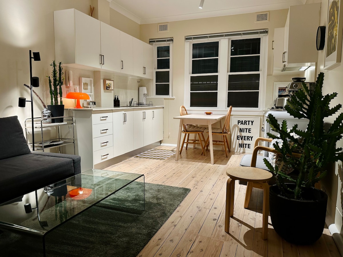 Umongst grit of sydney and kings cross is this little oasis. The apartment has everything you need including, internal laundry, ironing facilities, equipt kitchen, private bathroom, empty wardrobe. Located within a security building (communal areas are currently being decorated, the apartment is unaffected), the apartment is furnished with traditional vintage art deco items. Sydney's stunning harbor is 3 minutes walk. City underground trains and buses are a few minutes walk away.