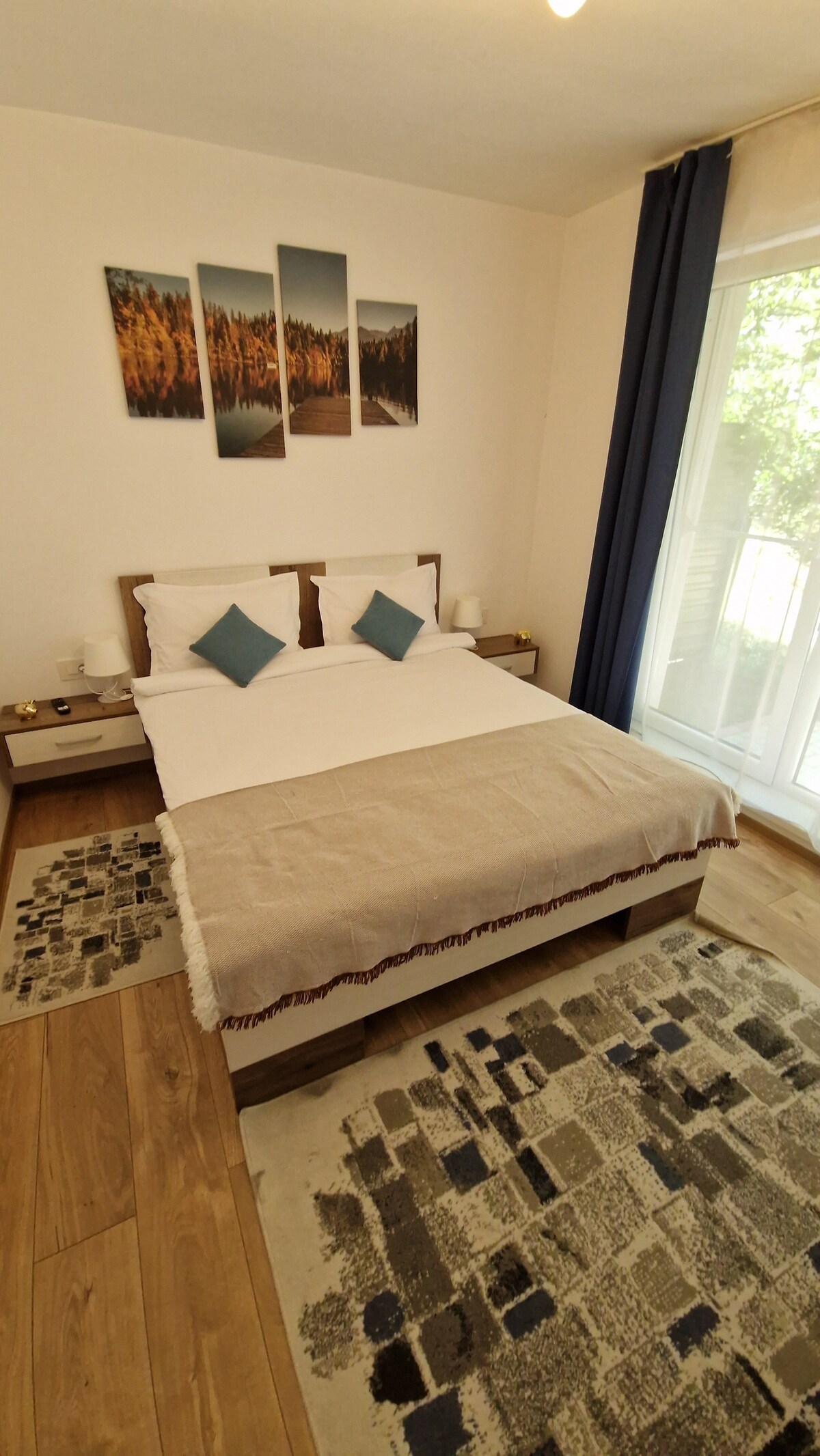 Ultramodern, teljesen felszerelt lakás saját parkolóval és intelligens zárral az érkezéshez/ távozáshoz. A vadonatúj Cartier Coresi lakóövezetben található, a Coresi Shopping Resort közelében, 10 percre a történelmi központtól. Van egy hálószoba franciaággyal, nappali kihúzható kanapéval, teljesen felszerelt konyha, légkondicionáló, nagy terasz függőággyal, mosógép / mosogatógép, két 4k TV Netflix és HBO Go csatornákkal.