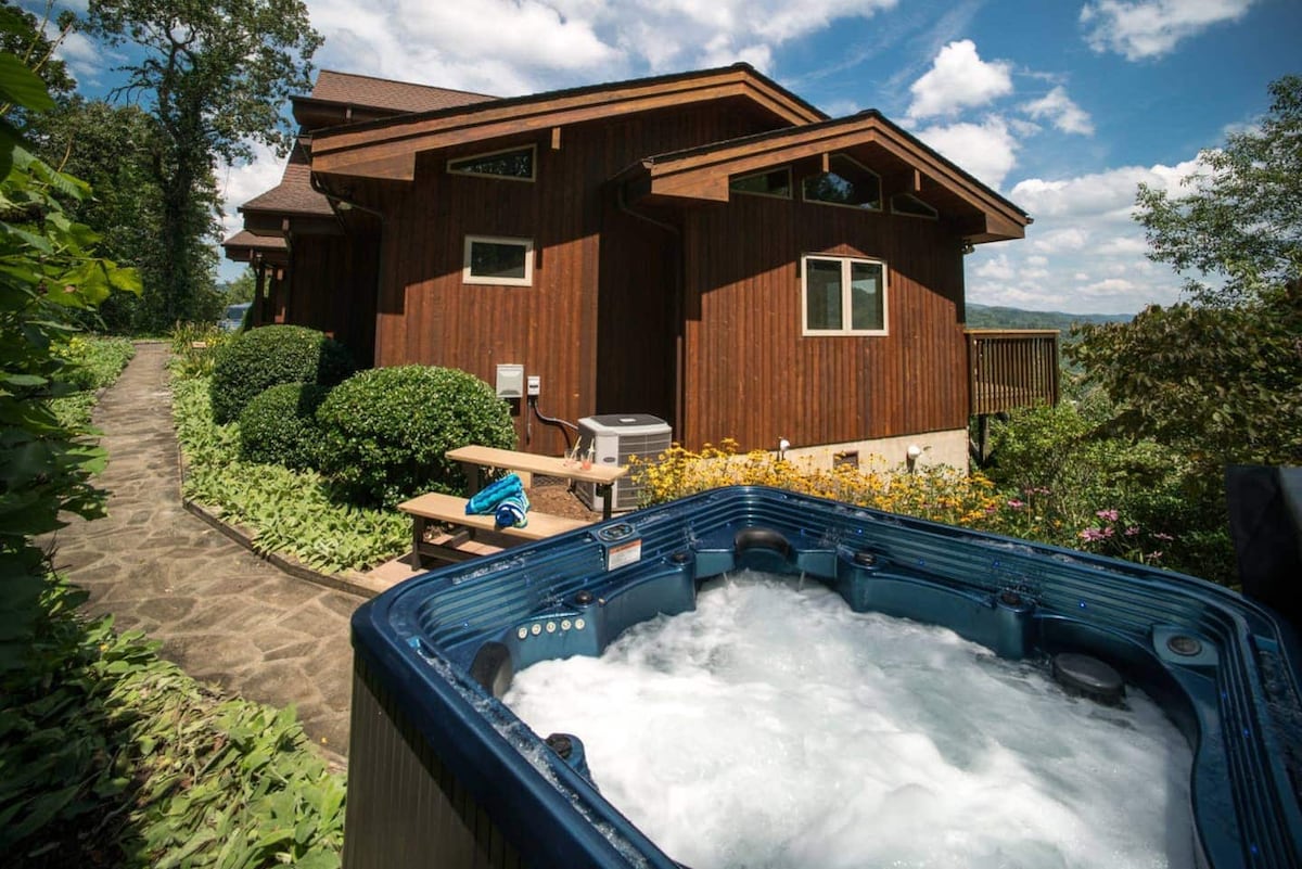 Hűsölj a légkondicionált, első emeleti Cottage Suite-ban, amely lenyűgöző kilátást nyújt a TN és NC hegygerincére! A jellemzők közé tartozik 2 hálószoba, 1 fürdőszoba, kandalló, étkező, 3 saját bejárat és egy terasz grillel, tűzrakóhellyel és 3 személyes pezsgőfürdővel. A hangárban egy 7 láb mély pezsgőfürdő is vár! Túrázz a Tennessee és Észak-Karolina határán, vagy fedezd fel a szurdokot úszáshoz, hegymászáshoz és kalandhoz. Egy békés hegyi kiruccanás vár rád!