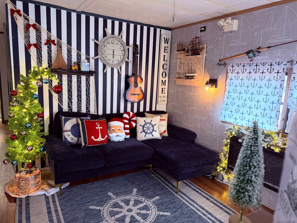 Welcome aboard your lake escape!! This captain's cozy, boathouse-themed tiny home is perfect for family fun—complete w/private hot tub, outdoor TV, grill gazebo, mini fish themed bar, & fire pit that is a walk away from the beach. Enjoy lakes, mini golf, tennis, & more in an amenity-packed community. Make s’mores, tell scary sailor stories, watch movies, play games, or create lakeside memories aboard your trip to Eagle Lake, PA! Halloween decor til Nov 23rd - Christmas decor Nov 23rd to NYE!